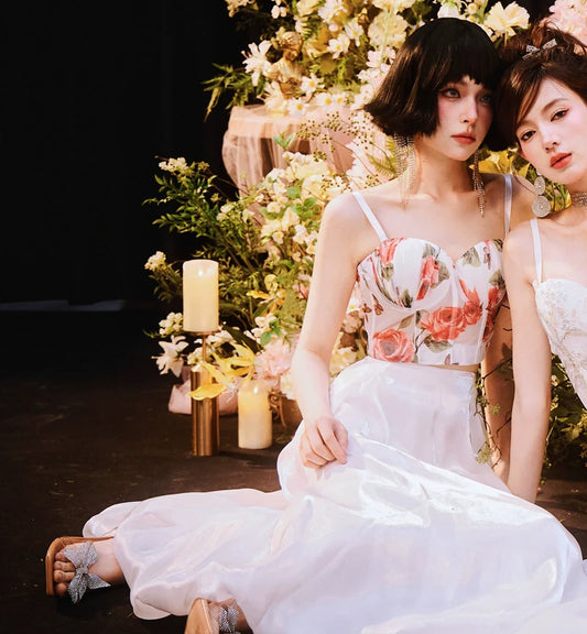 DOLLY Elegant White Natural Waist Flower Bud Long Chic Skirt-CYNTHIA (V)