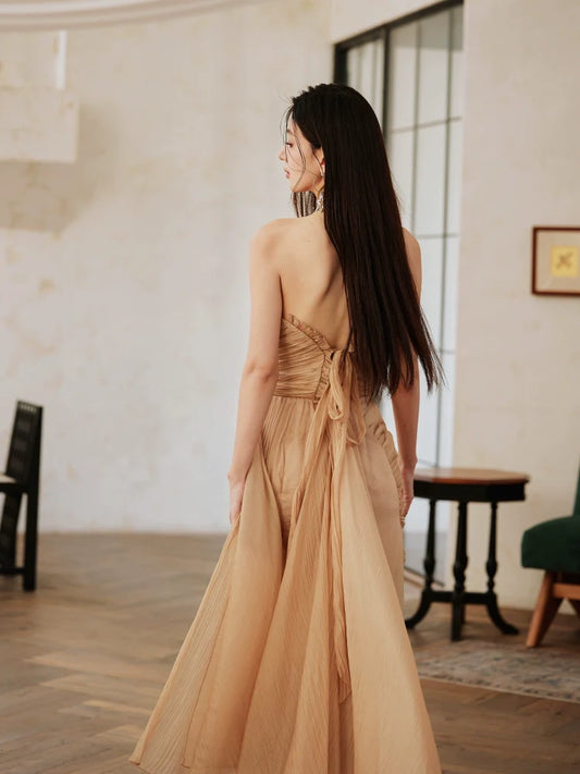 DOLLY High End Apricot Sleeveless Bandeau Slim Fit Pleated Cocktail Dress- Samai