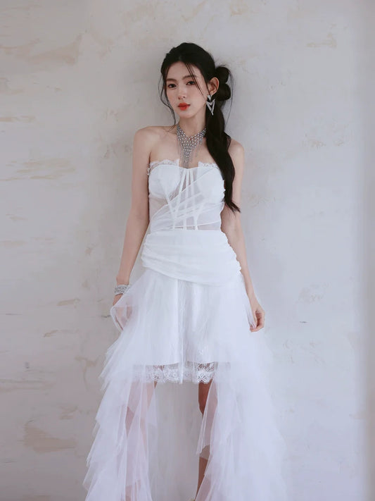 DOLLY Elegant White Tube Top Long Puffy High Waist Wedding Dress-GRACE