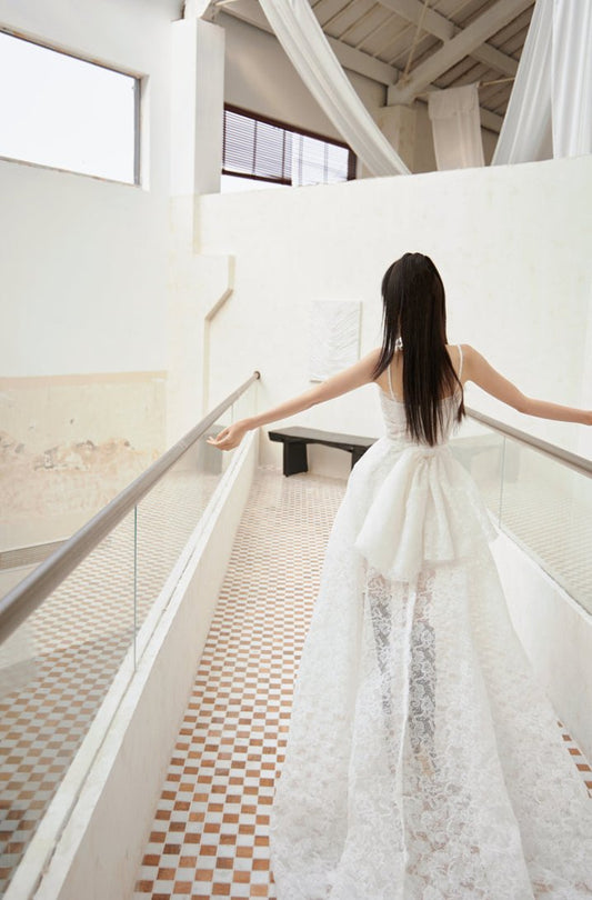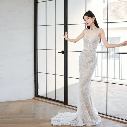 DOLLY Elegant White Sleeveless Lace Slim Fit Long Wedding Dress-SUN