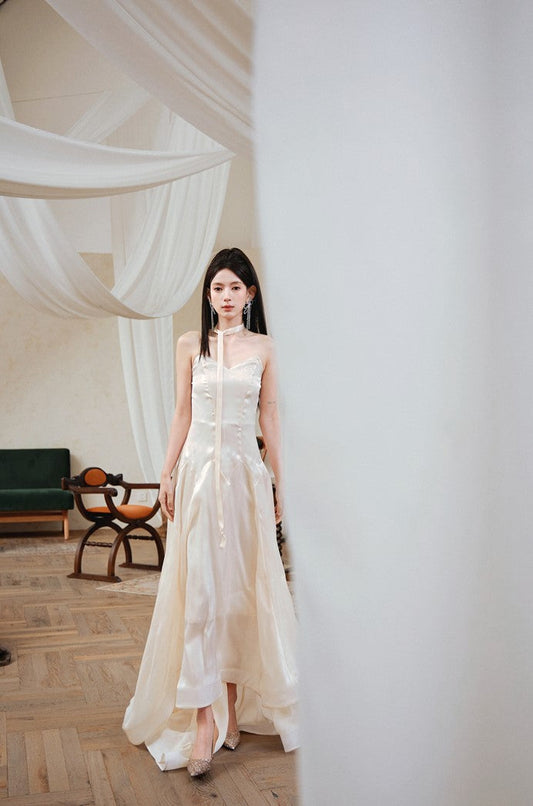 DOLLY High End Cream Sleeveless satin slip flow Wedding Dress-SONNI