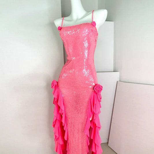 DOLLY Luxury Blue/Pink Sleeveless Sequin Suspender Celebrity Style Dress-FANI