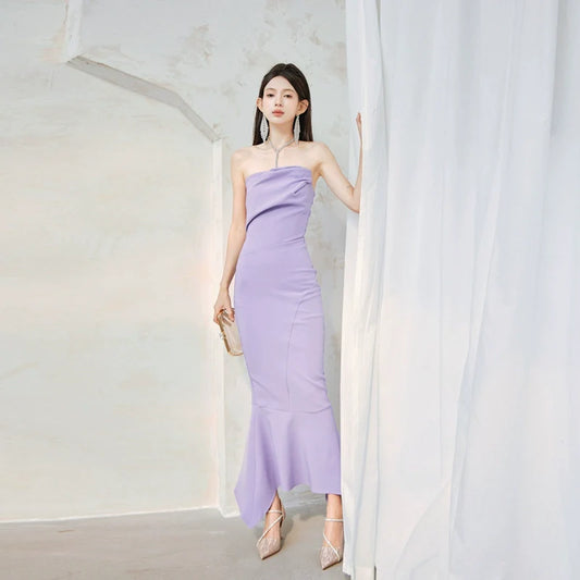 DOLLY Luxury Light Purple body con Taro Tube Top Fishtail Dress-ALERO