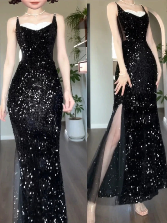DOLLY Luxury Black Sleeveless Sequin High Waist Fish Tail Sexy Evening Dress-LYRA