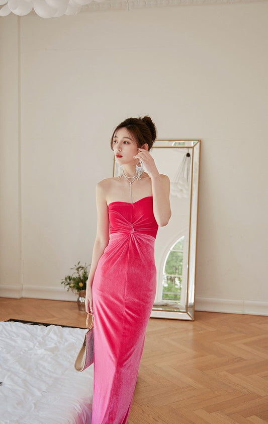DOLLY Luxury Rose Stain Sleeveless Backless Pleated Long Banquet Dress-Fago