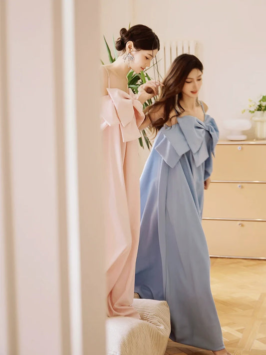 DOLLY Luxury Pink/Blue Sleeveless Big Bow Long Loose Resort hanbok Dress-JIJI