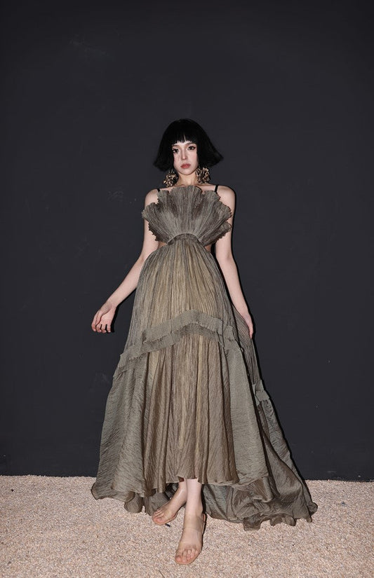 DOLLY Luxury Sleeveless Backless Strap Handmade Pleated Party Dress-GINA