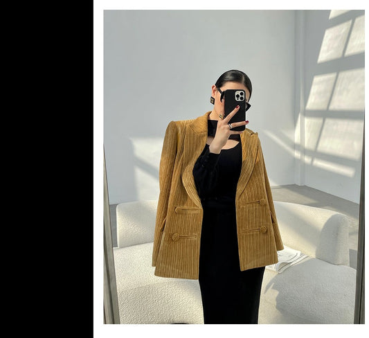 Huanzi worsted wool high-end vintage British women's autumn winter blazer - Tiwe