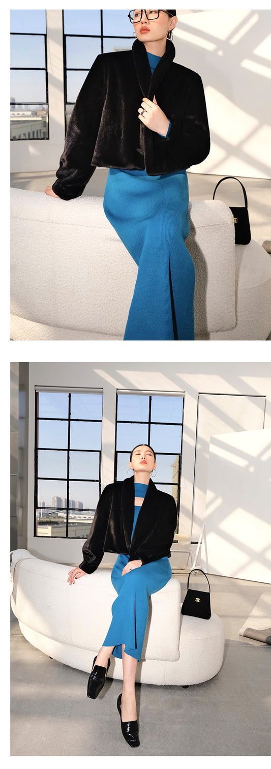 Huanzi new French velvet fashionable high waist slim and small slit skirt female- Elvin