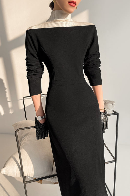 Huanzi new elegant classic black high turtle neck dress - Kios