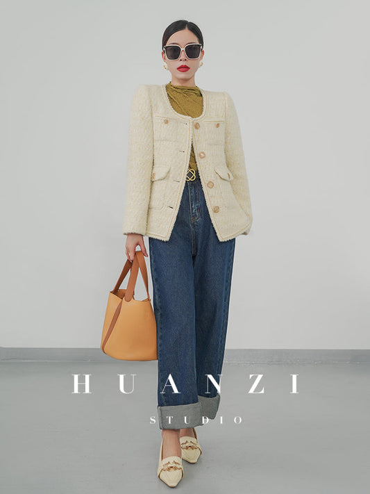 Huanzi spring autumn heavy couture tweed coat jacket - Kindr