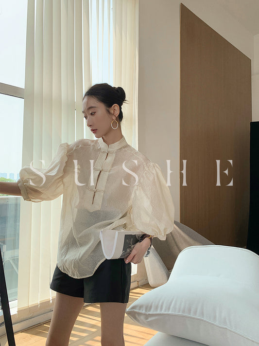 SUSHE Gold Series Retro Spring Women's 2023 Loose Stand Collar Shirt -Star