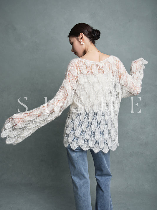 luxury high-end Romantic ultra-young mohair cropped neckline pullover sweater