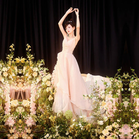 DOLLY High End Sleeveless Diamond High Waist Suspender Long Prom Dress-NORA