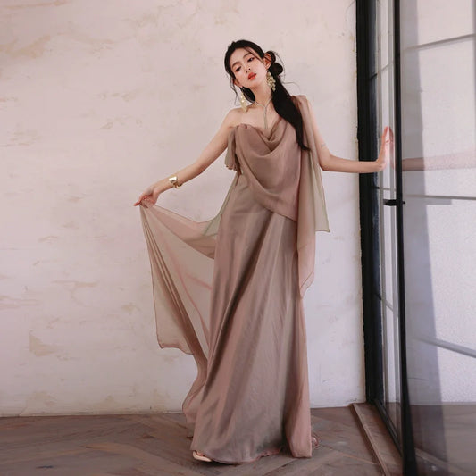 DOLLY High End Sleeveless Halter Shawl Long Pleated evening gown Dress-Linda