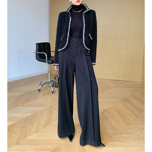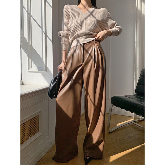 WANXO camel high waist drooping casual pants new straight loose wide leg pants- Tela
