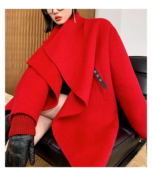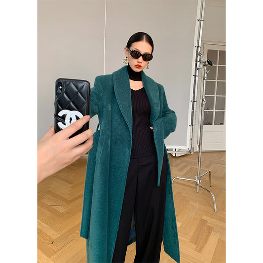 WANXO female double-sided Alpaca long-haired large lapel woolen mid-length coat - Lara