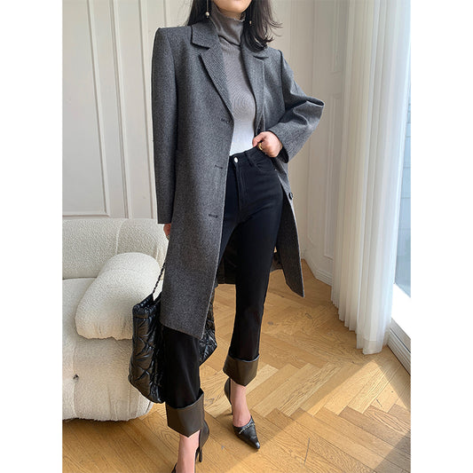 WANXO yellow plaid coat new high-end mid-length suit woolen coat- Kisa