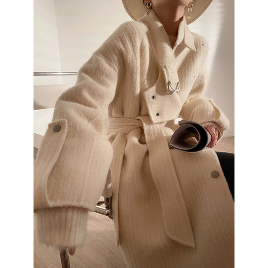 Aconiconi | Double-sided Feminine White Mid-Length wool Coat - Fuji