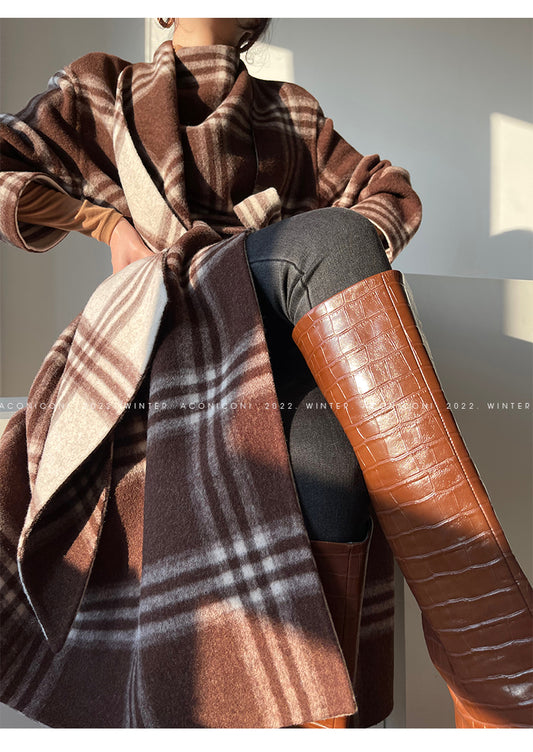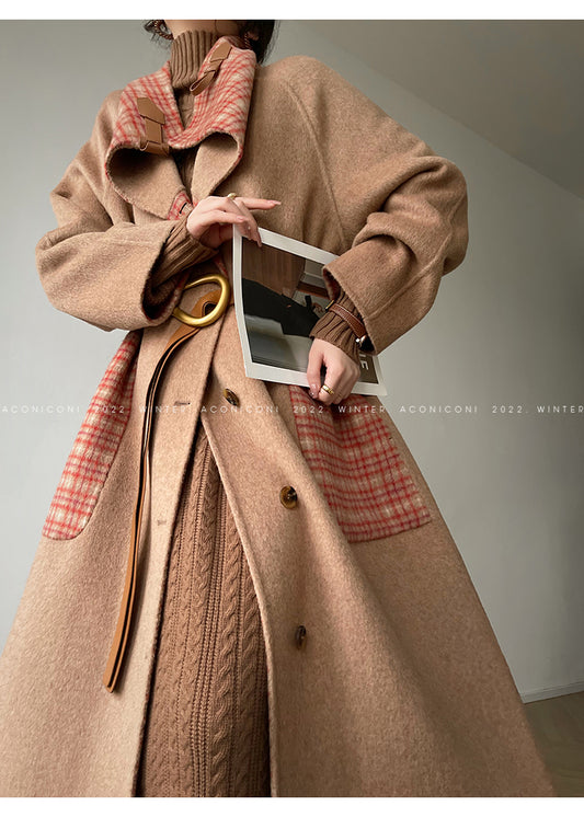 Aconiconi| All-Wool Double-Sided Plaid Checkered Long Coat Winter- Cardamom