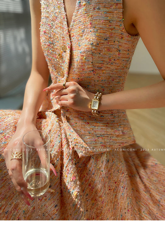 Aconiconi| Tweed, high-end vest, shirt,, high-waisted skirt - Anabelle