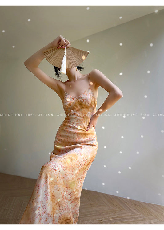 Aconiconi| French elegant print slip dress + top short cardigan-Tsubakino Hanazaki