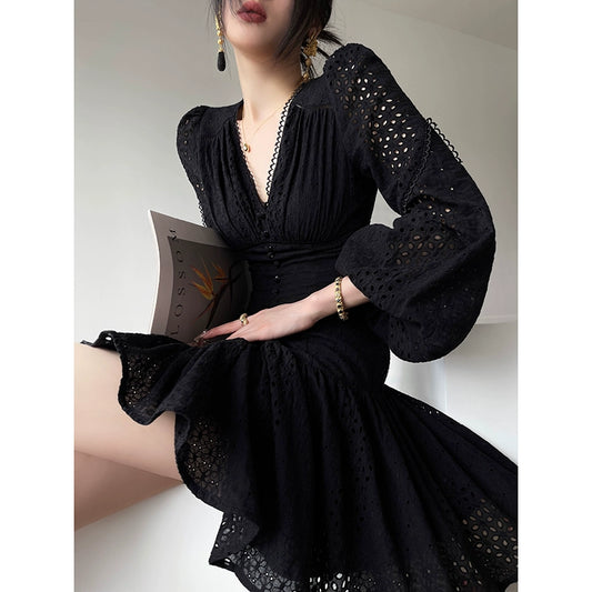 Aconiconi| Autumn Shadow French loose puff sleeve dress, skirt + top - Hefeng Autumn Shadow