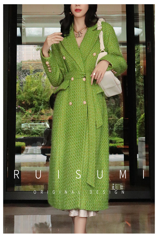 Elegant French style autumn and winter new high-end custom light luxury gold and silver silk small fragrant wind coat green fashionable woolen coat