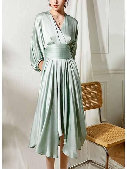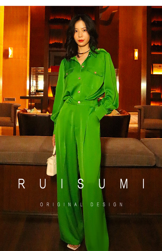 Bright Green gorgeous long sleeve with satin jumpsuit- Dilia