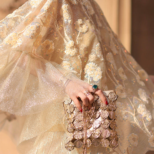 Exquisite Three-dimensional flower cape top + gilt wavy short suit set - Ilyia