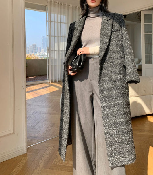 Gray WANXO color herringbone quilted woolen coat new mid-length suit woolen coat- Passion