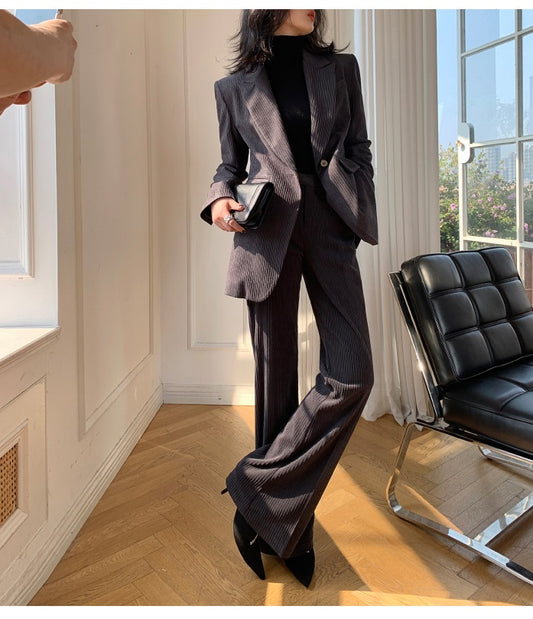Gray WANXO retro corduroy two-piece suit new suit jacket high waist casual wide leg pants- Orfara