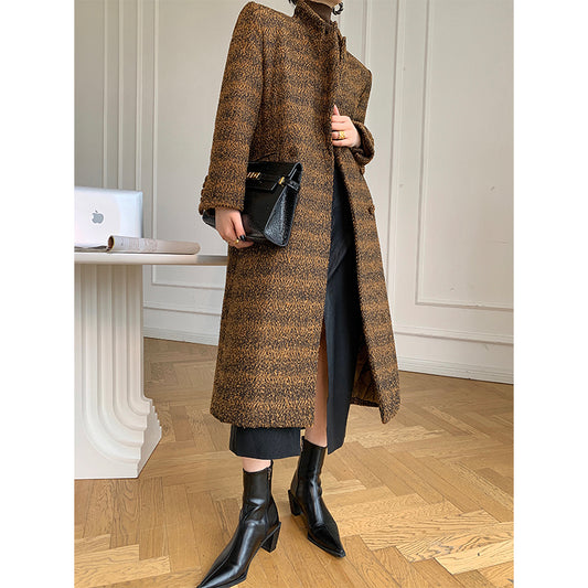 Brown WANXO coffee color herringbone quilted woolen coat new mid-length suit coat- Passion
