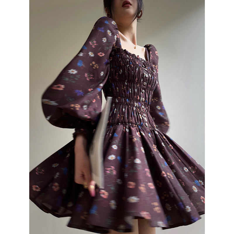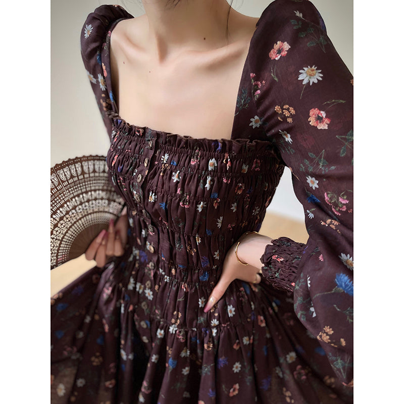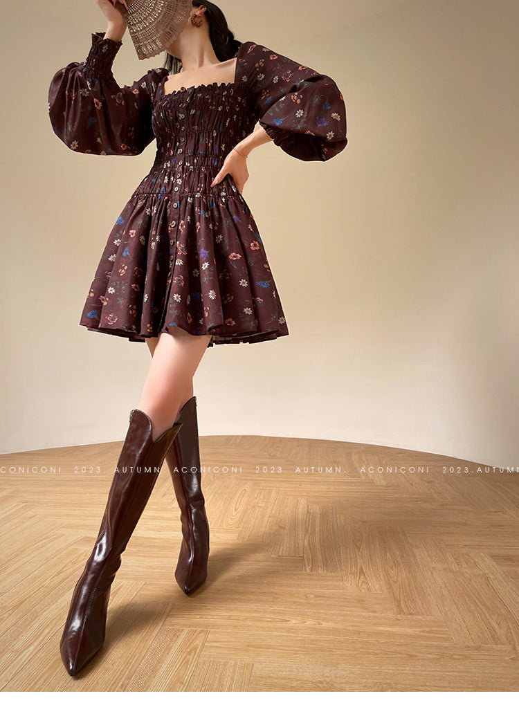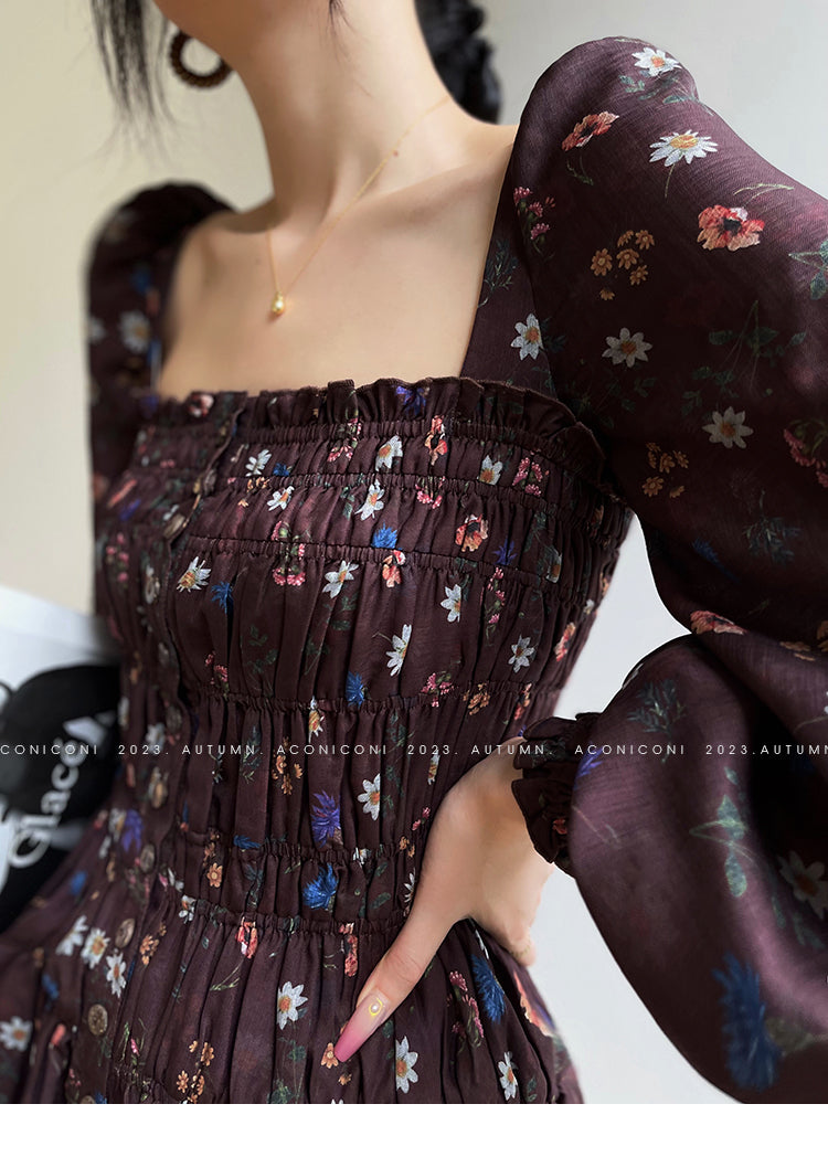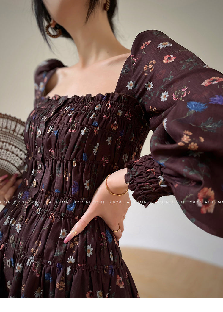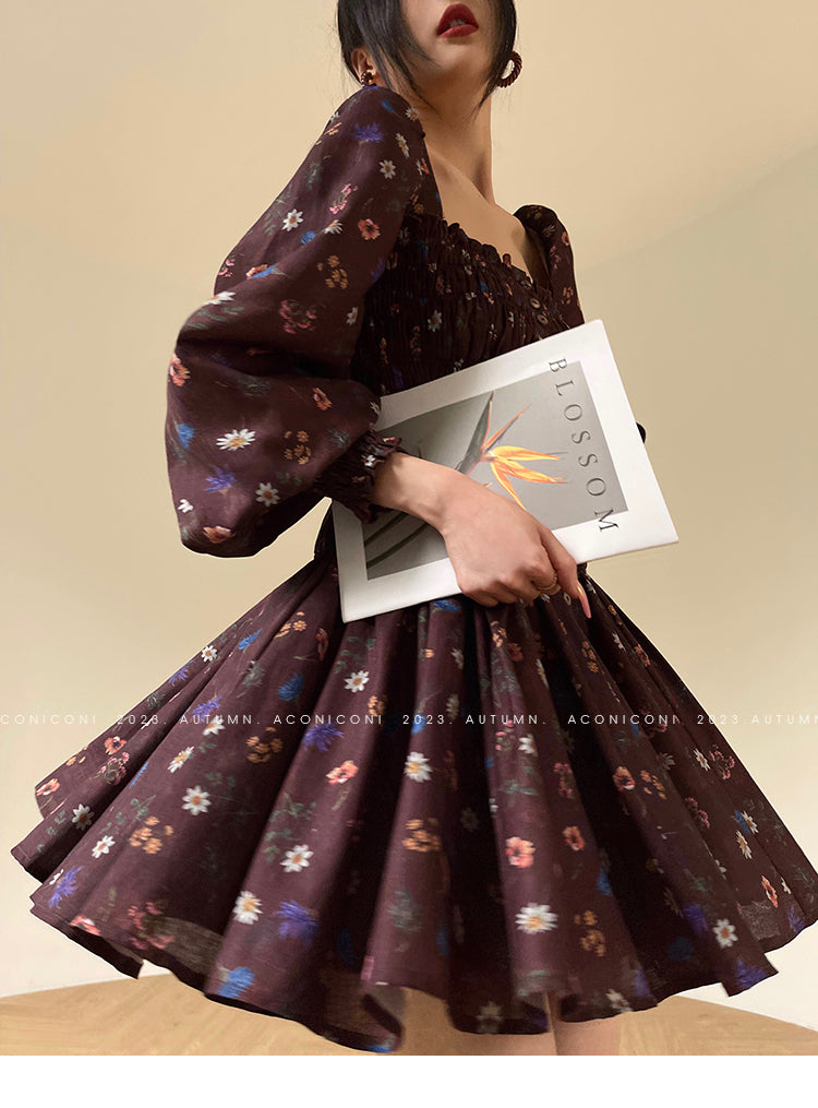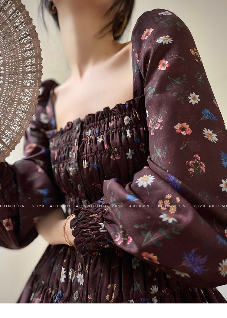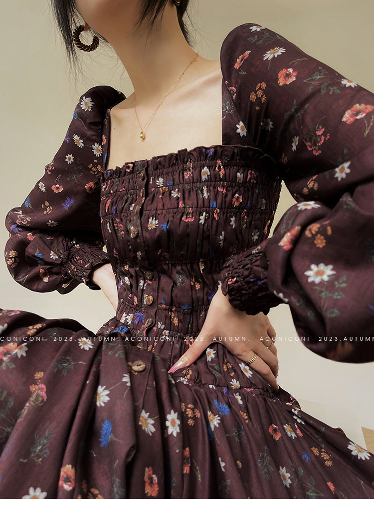 Aconiconi Autumn Floral print French square neckline dress - Samba Moon