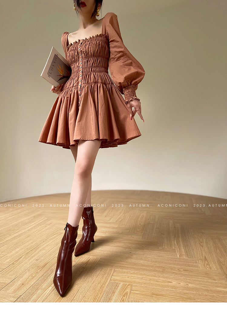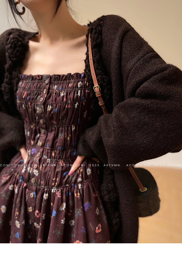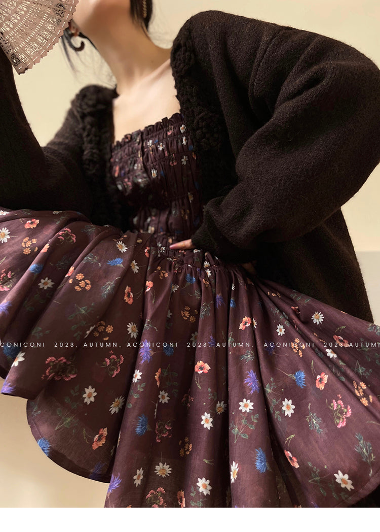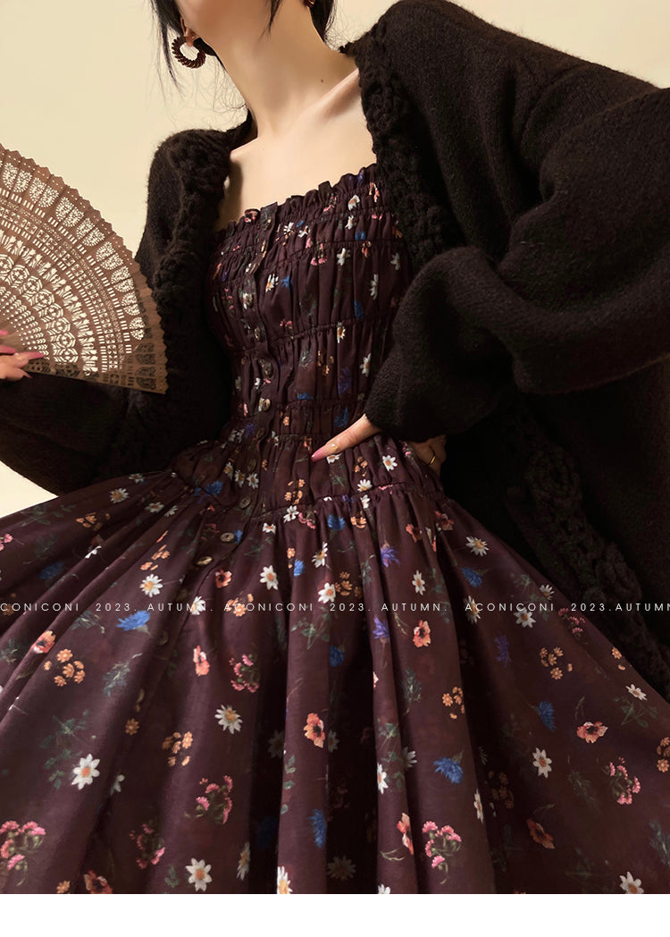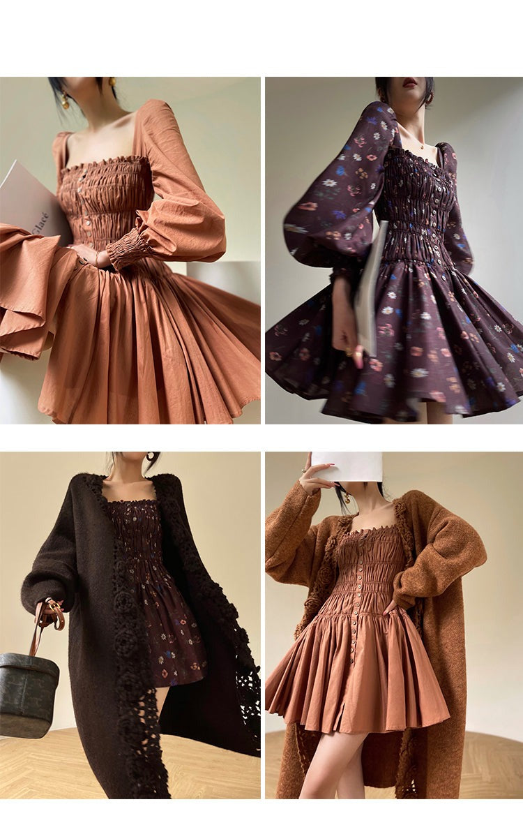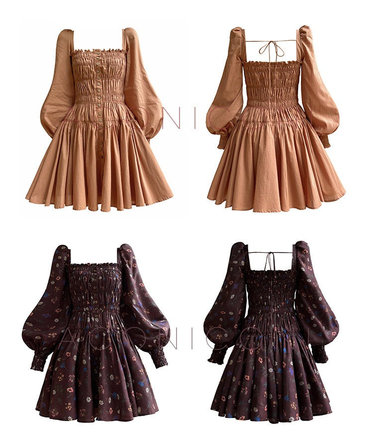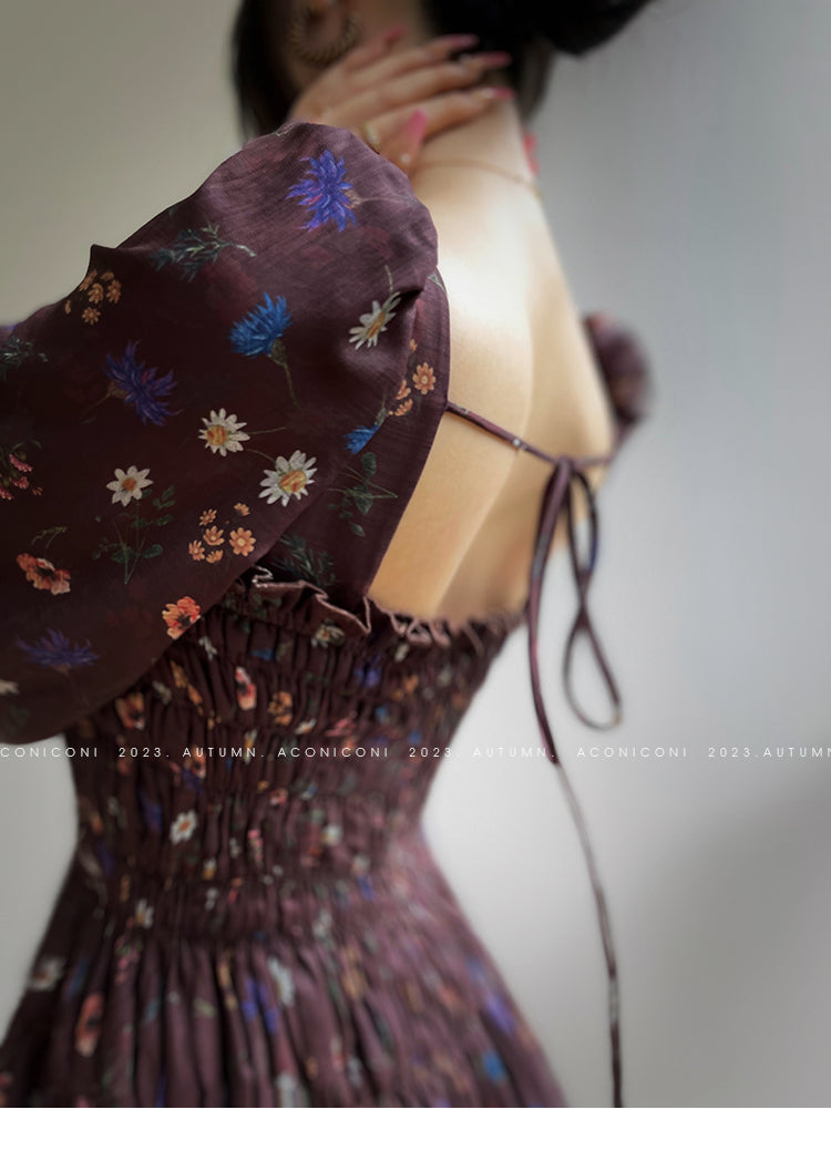 Aconiconi Autumn Floral print French square neckline dress - Samba Moon