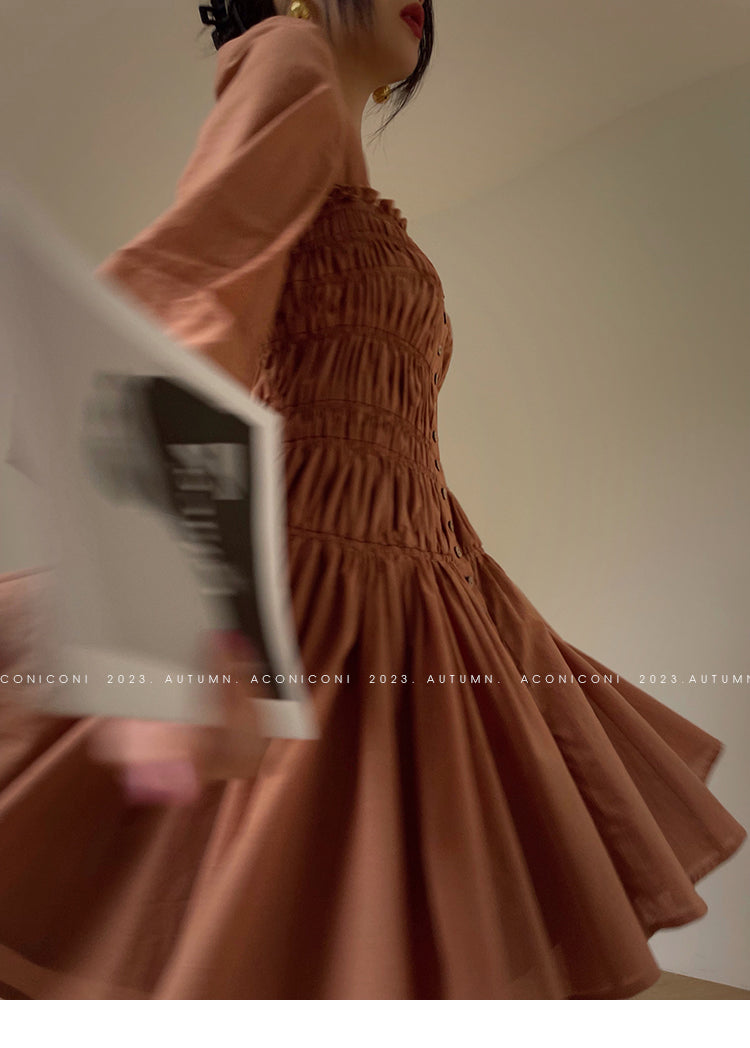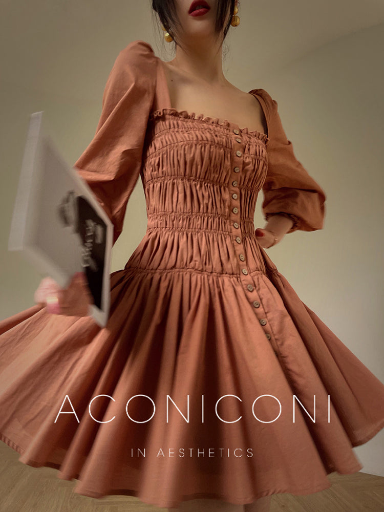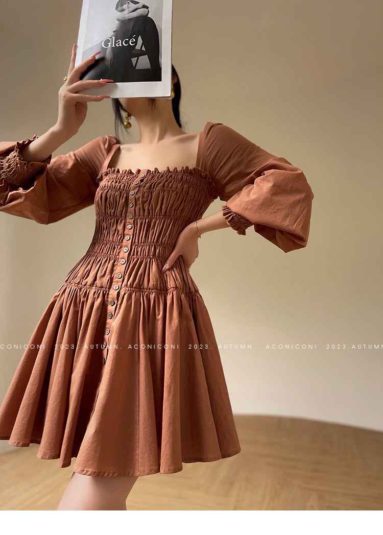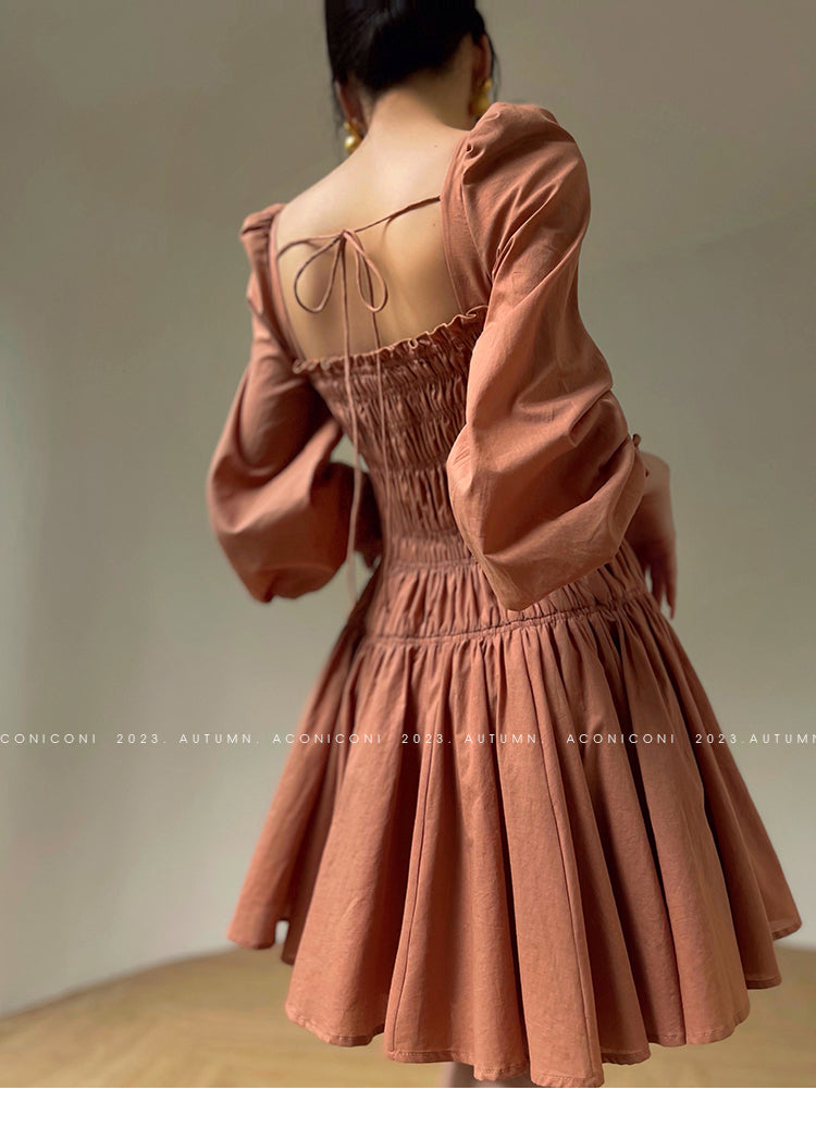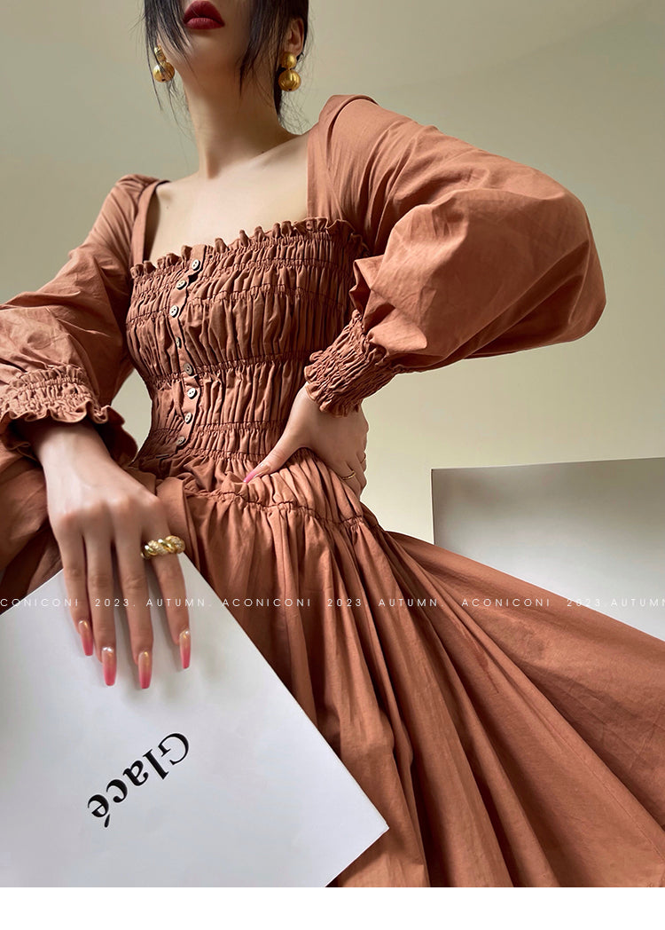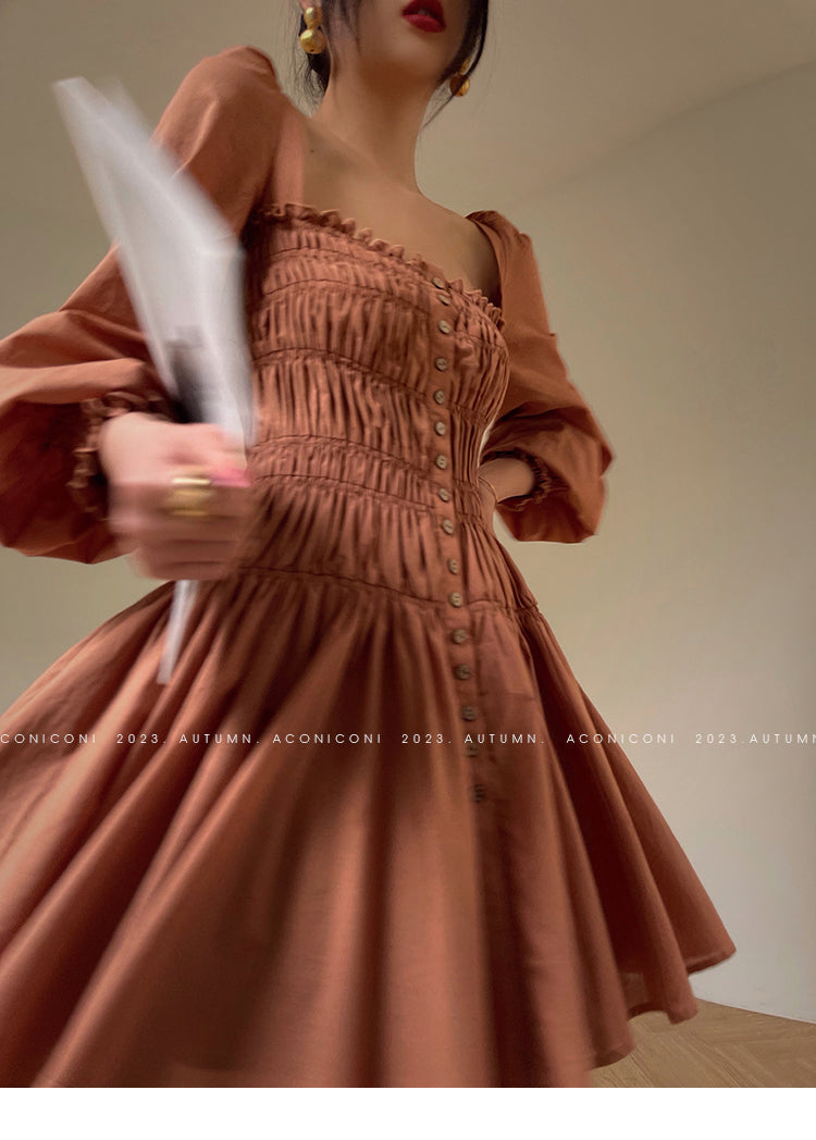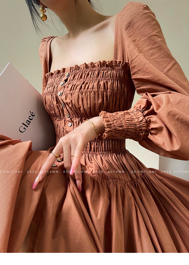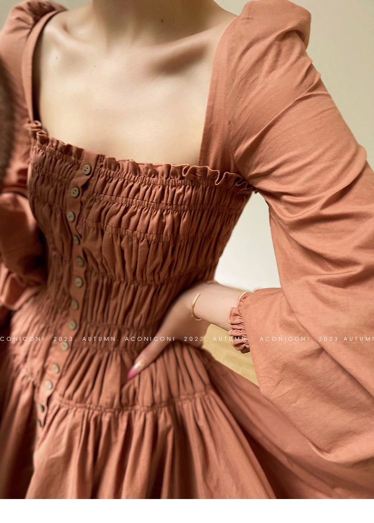 Aconiconi Autumn Floral print French square neckline dress - Samba Moon