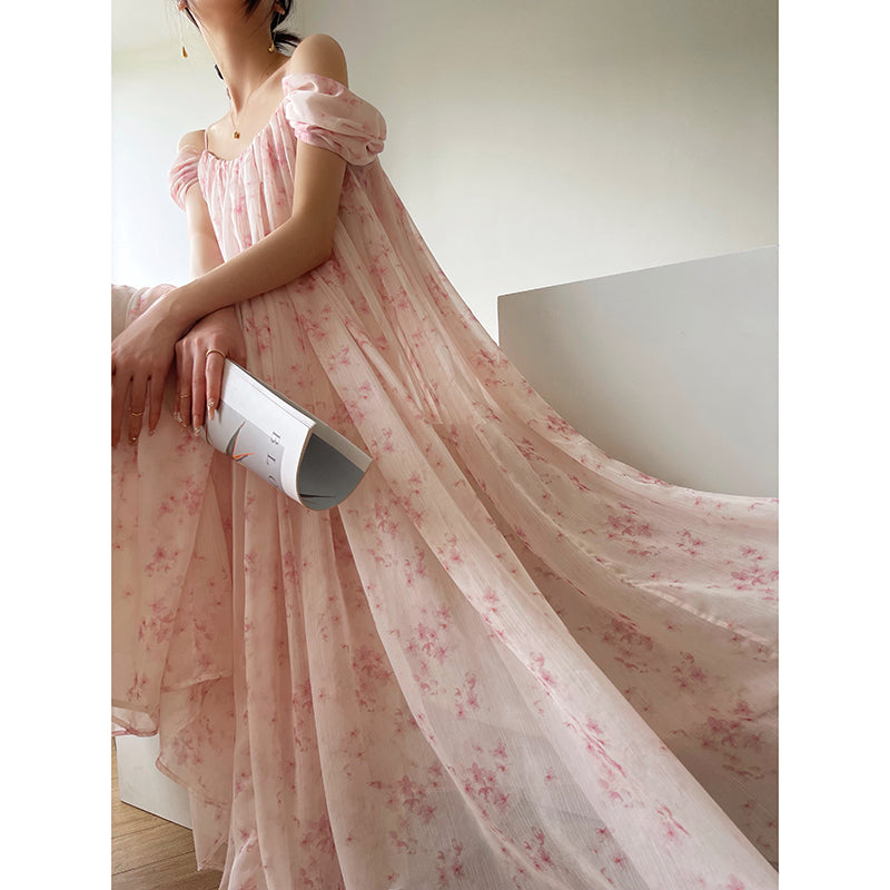Aconiconi Broken floral slip birdgertons inspired loose dress -Fuso Hibiscus