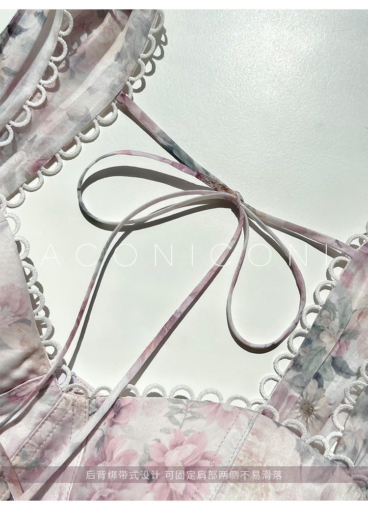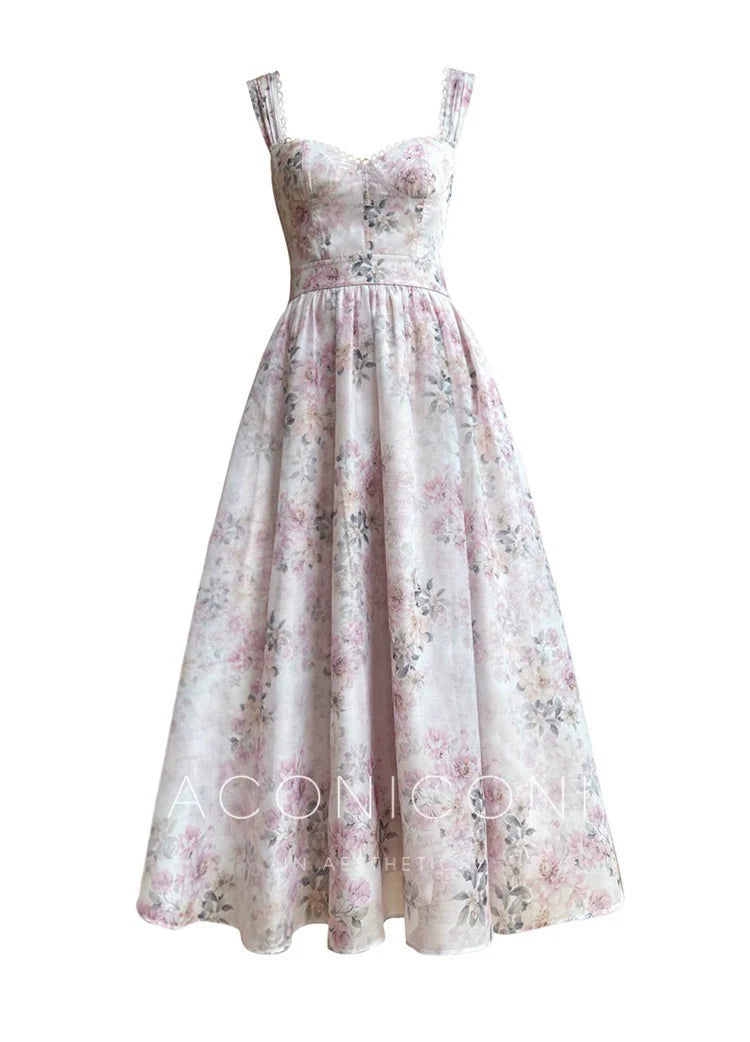 Aconiconi Elegant French Lace Print Long Summer Dress- Spring Pond Flowers