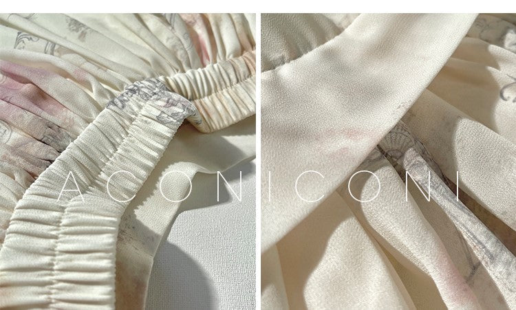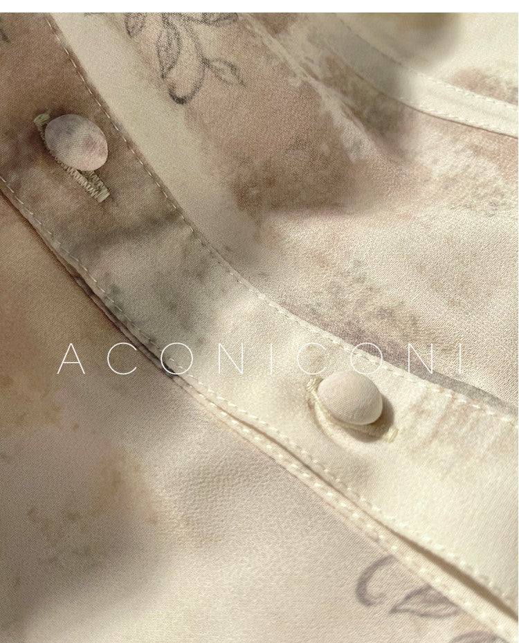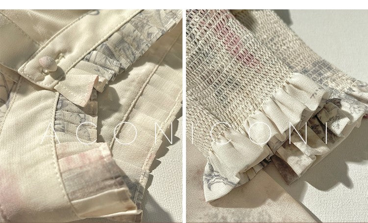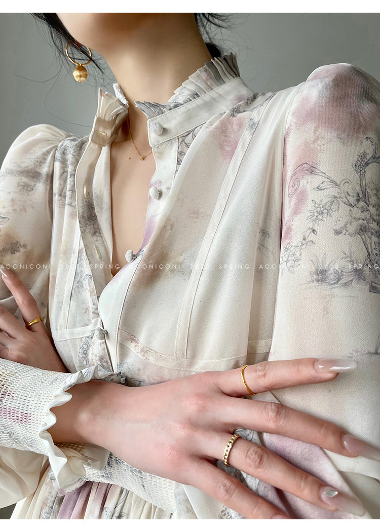 Aconiconi Elegant Stand Collar Long Sleeve Flower Print Tutu Dinner Dress- Konos Love Letter