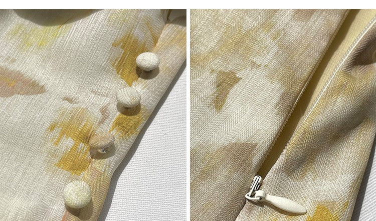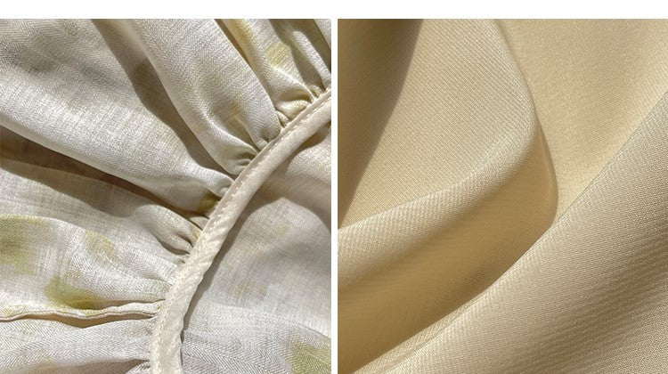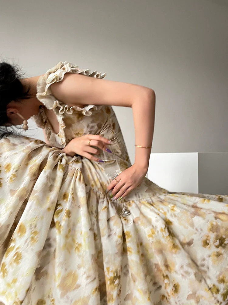 Aconiconi Elegant U-Neck pleated Short Sleeve Tea Dinner Date Dress- Ginger Flower Summer