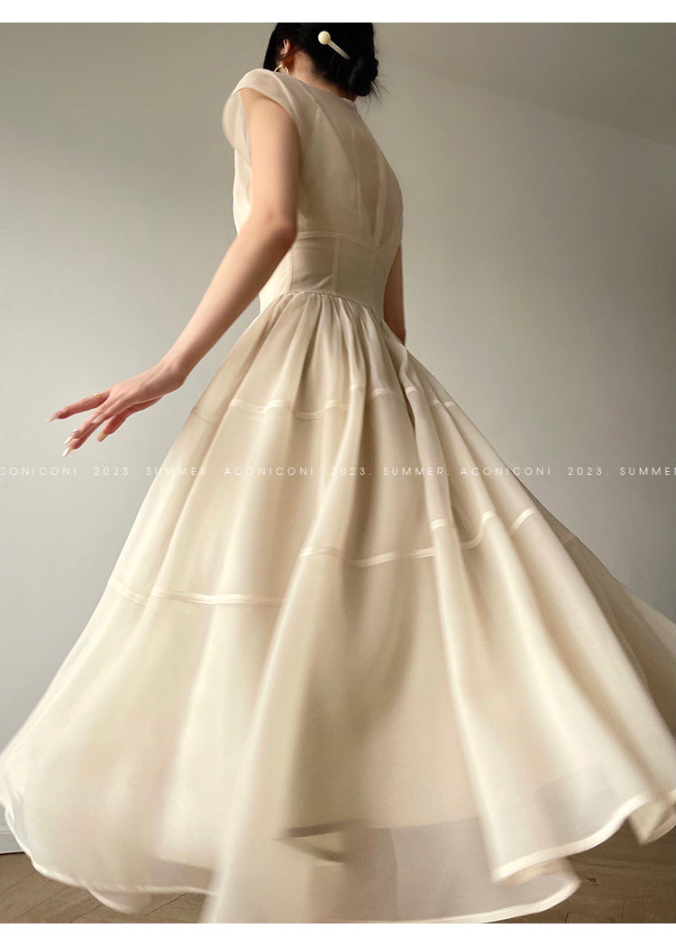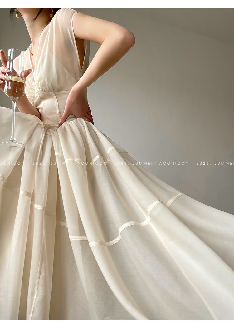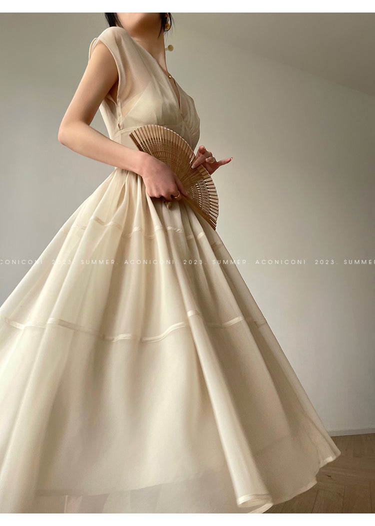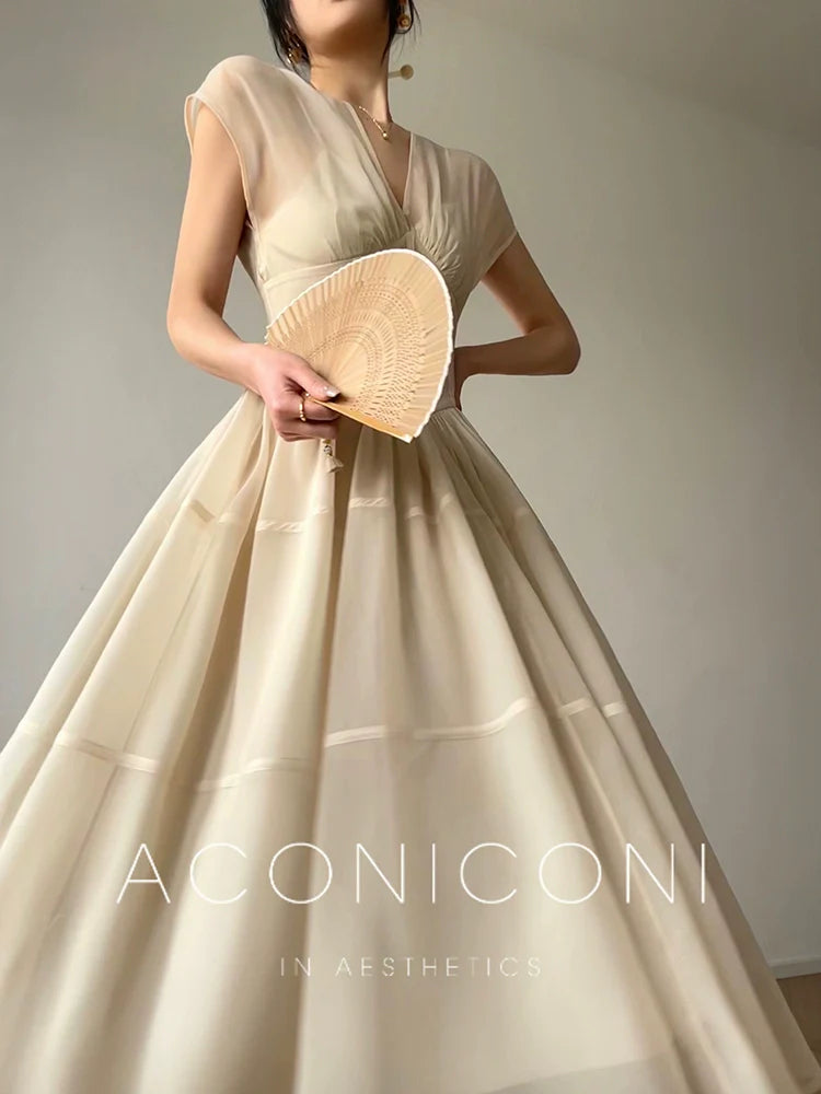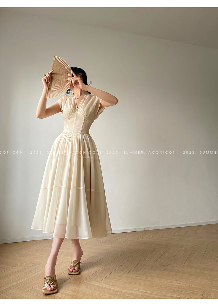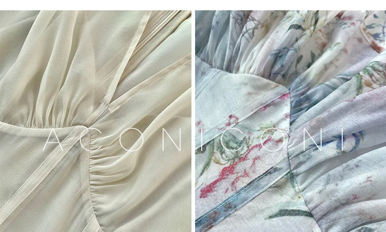 Aconiconi high-end V-neck A-Line Vintage printed tea summer dress- Yufu fairy