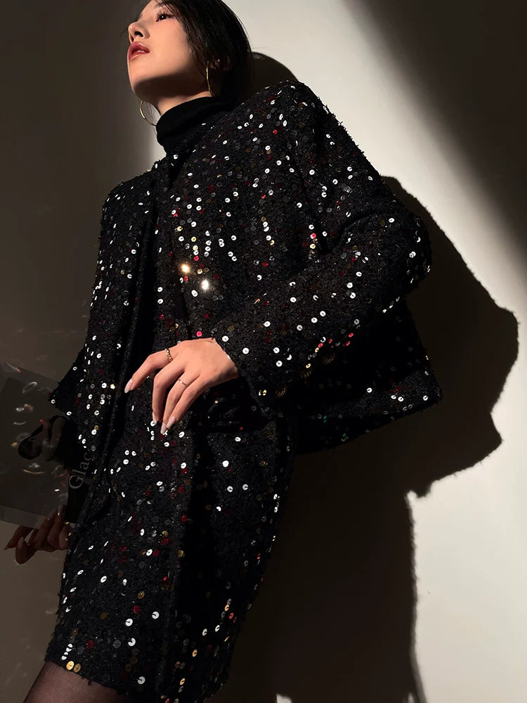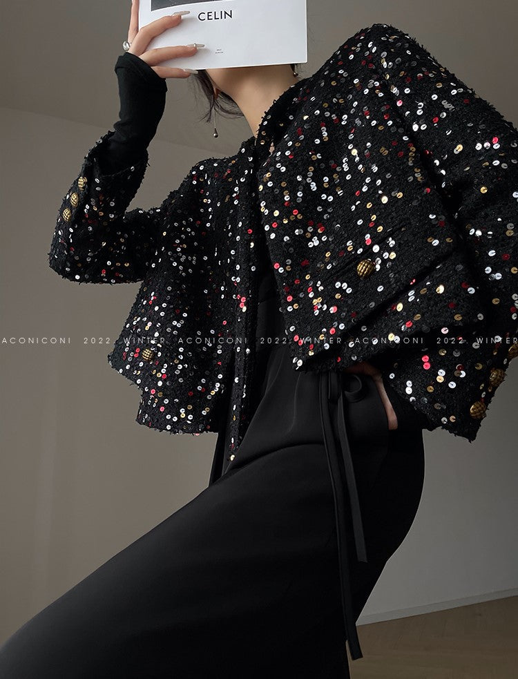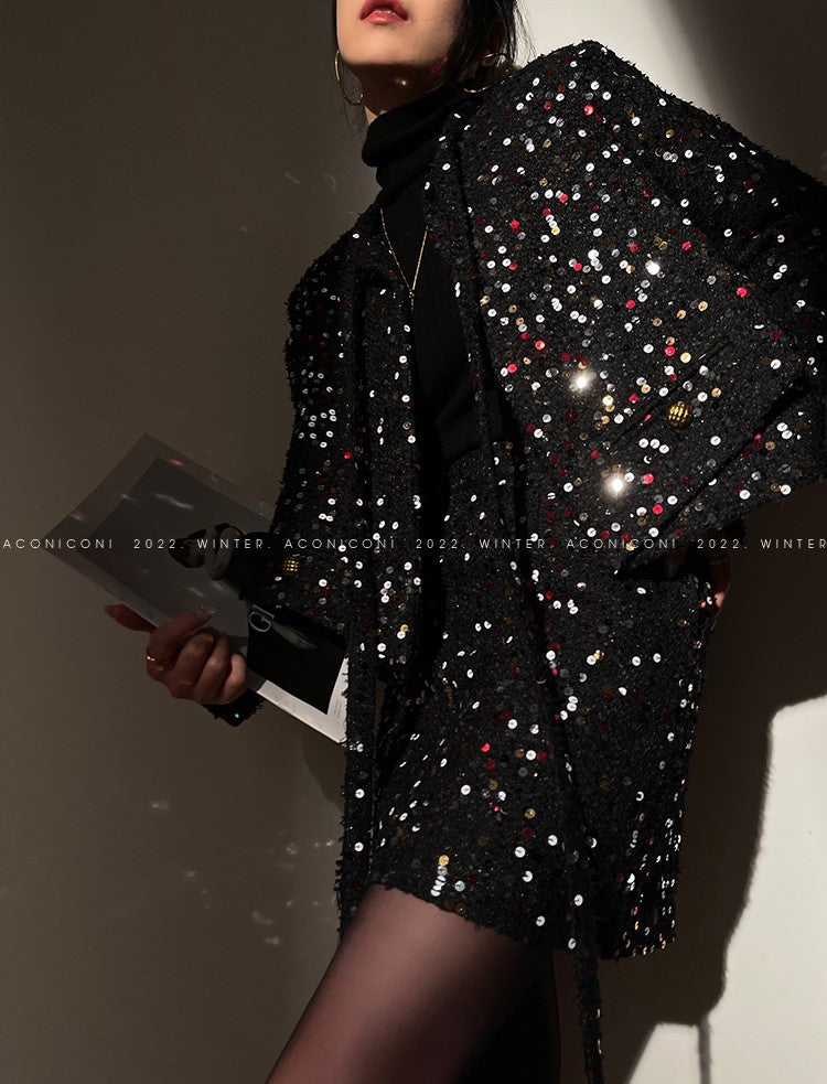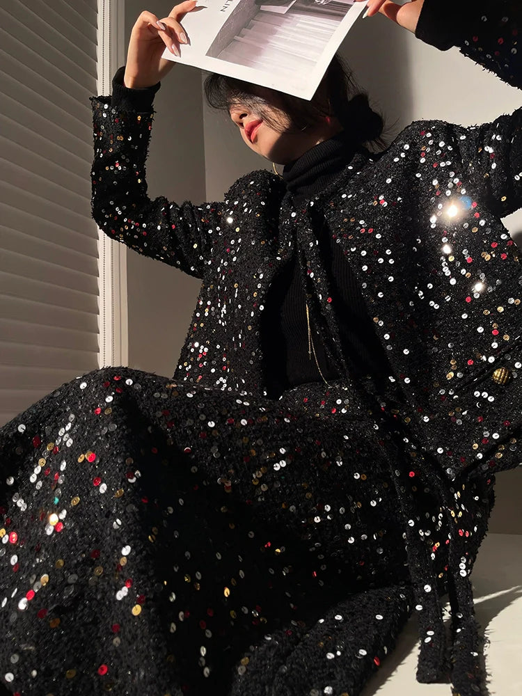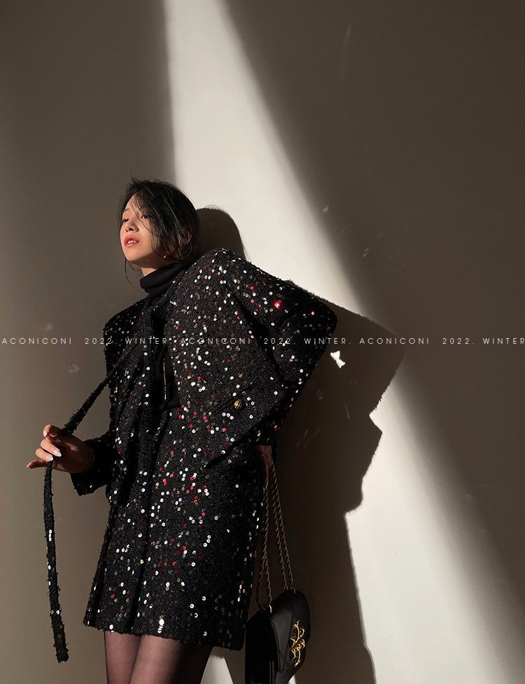 This Classy Chic Elegant suit set will elevate your wardrobe to a new level of sophistication. Made of delicate tweed fabric, this jacket and skirt combo exudes luxury and taste. Perfect for any occasion, it's a must-have for those who want to make a statement with their fashion choices.