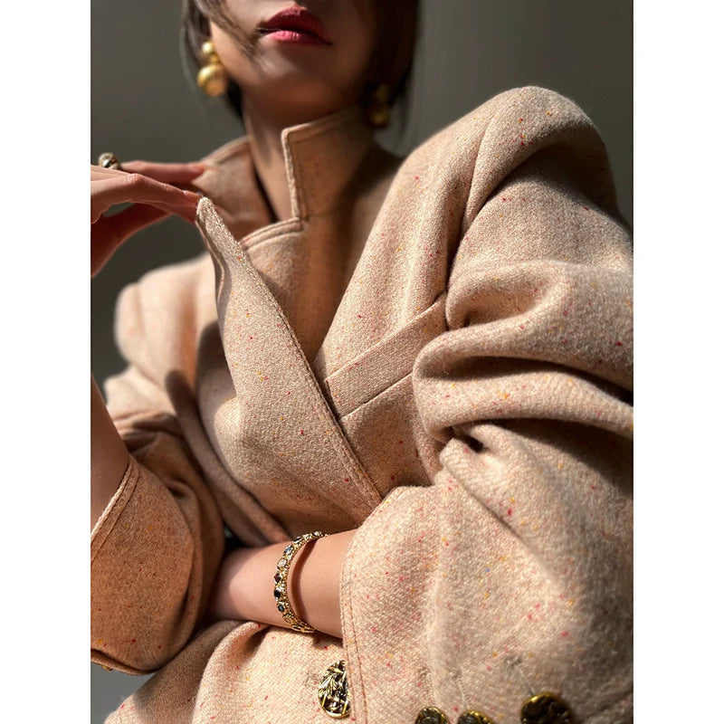 Aconiconi Girl Full wool French long sleeve Blazer pleated skirt - Maillard