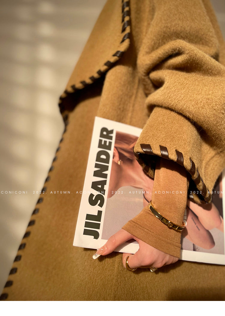 Indulge in luxury with our Aconiconi High-End Brown Long Sleeve Double Breasted Braided Wool Coat-Tracie. This bold and elegant coat exudes sophistication with its double-breasted design and intricate braided detailing. Made from high-quality wool, it will keep you warm while making a statement. Elevate your wardrobe with this exclusive piece.