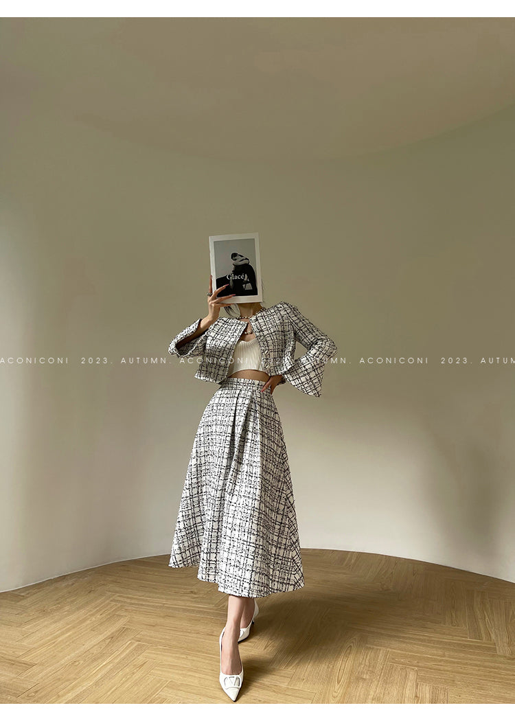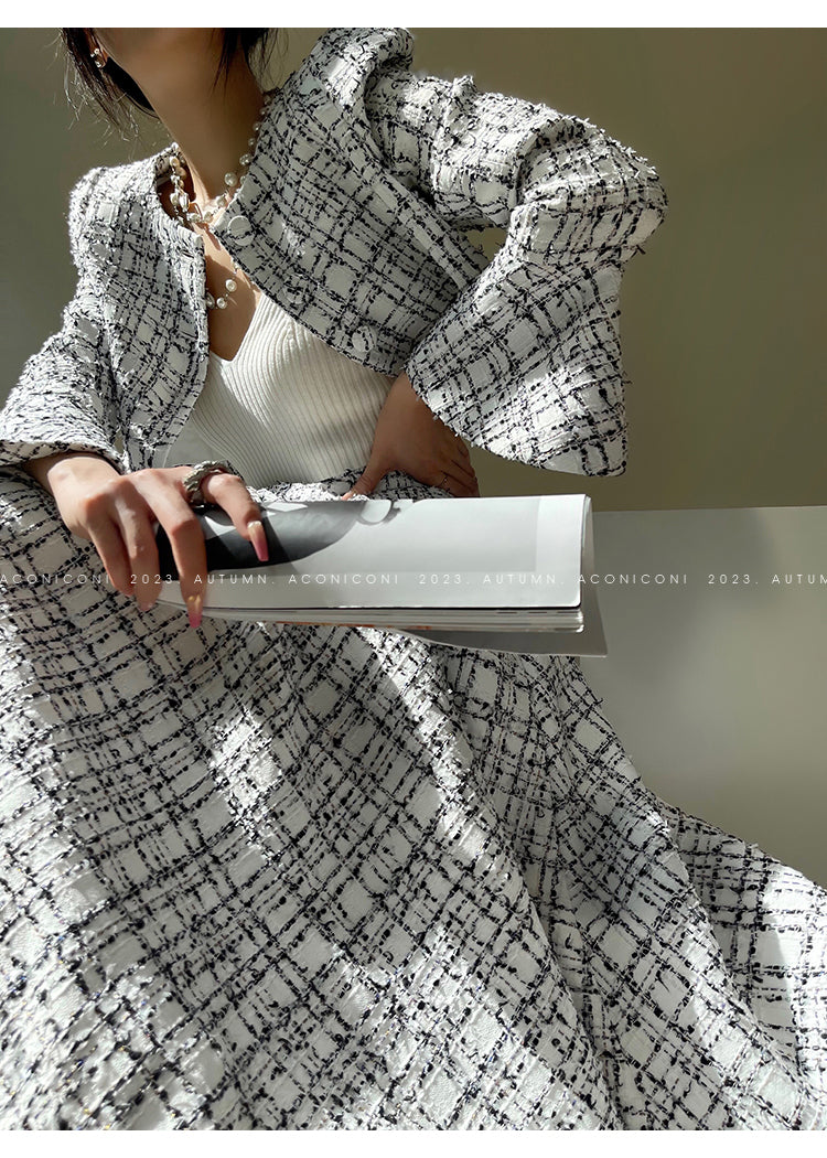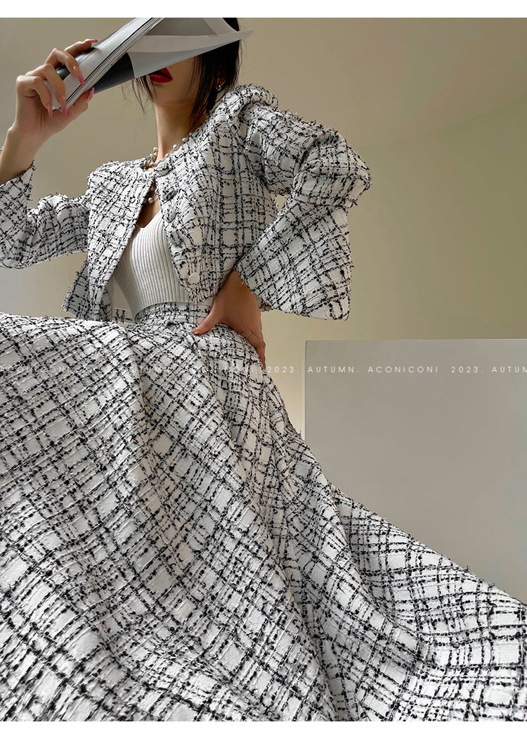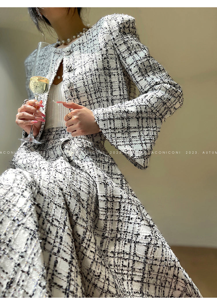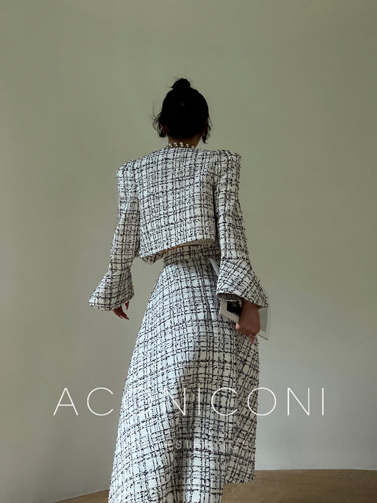 Aconiconi High-end tweed short coat + high-waist skirt two-piece set - Milan Wilderness
