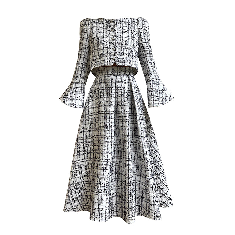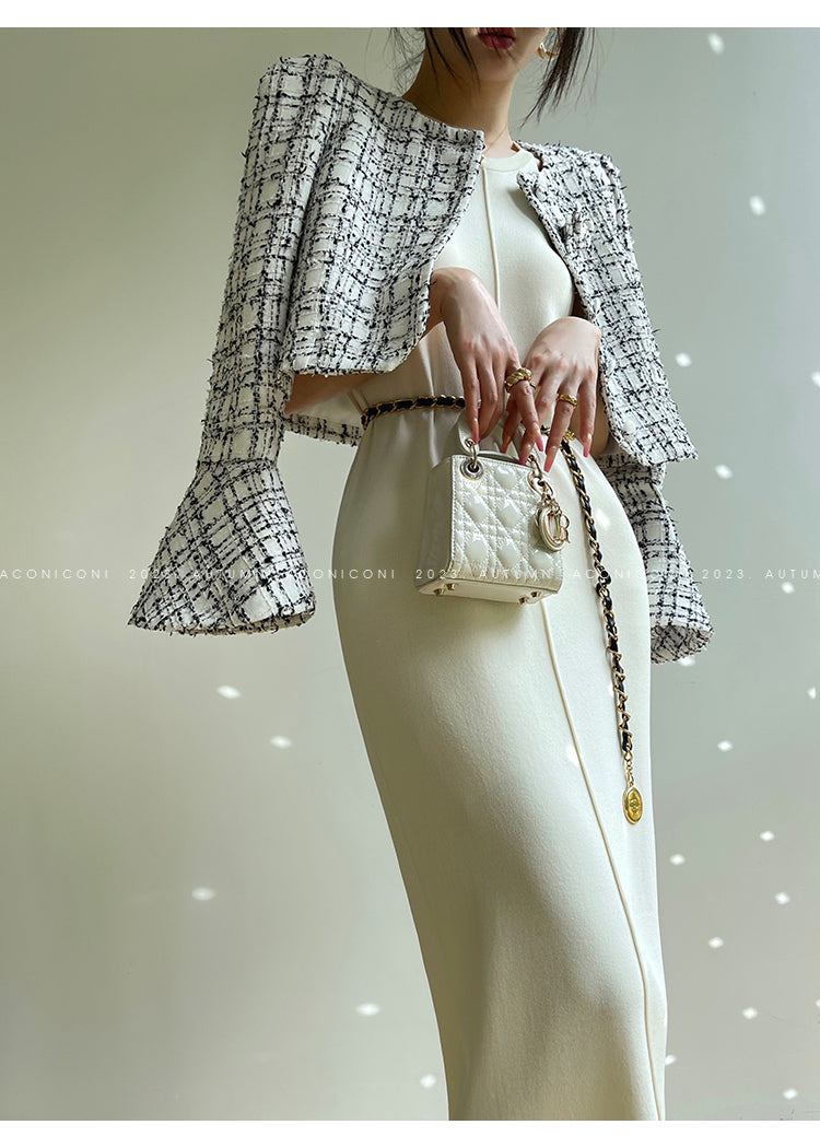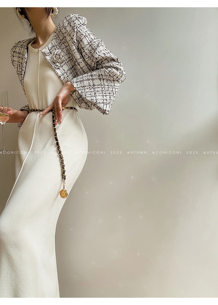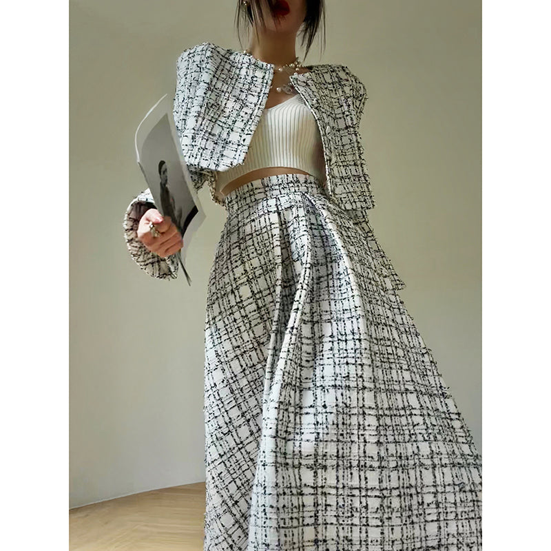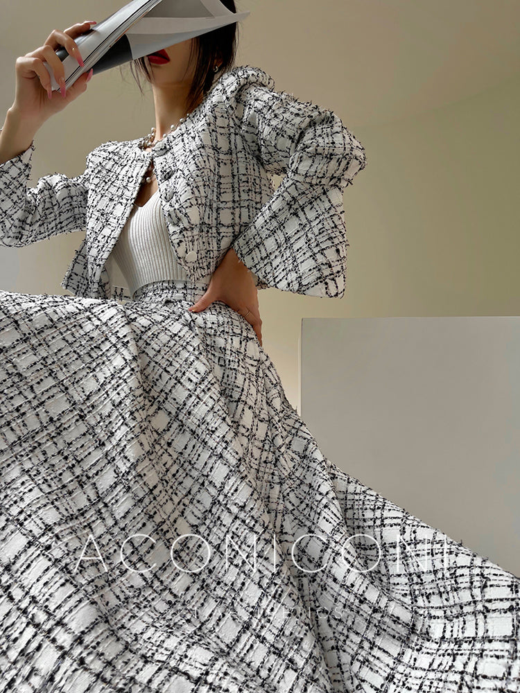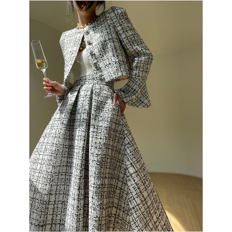 Aconiconi High-end tweed short coat + high-waist skirt two-piece set - Milan Wilderness