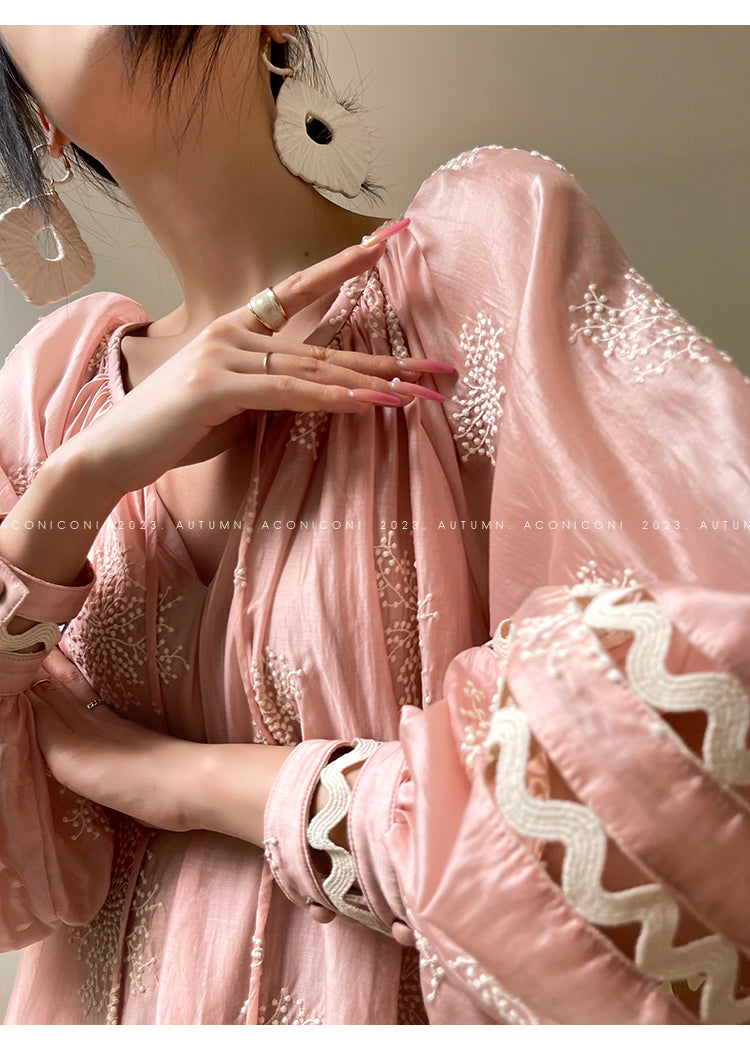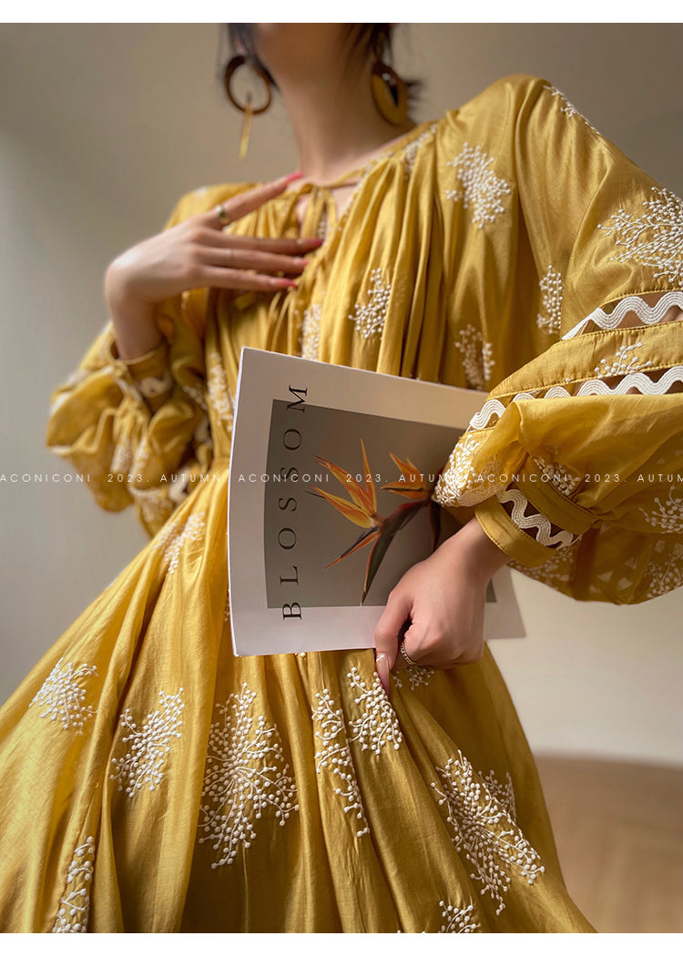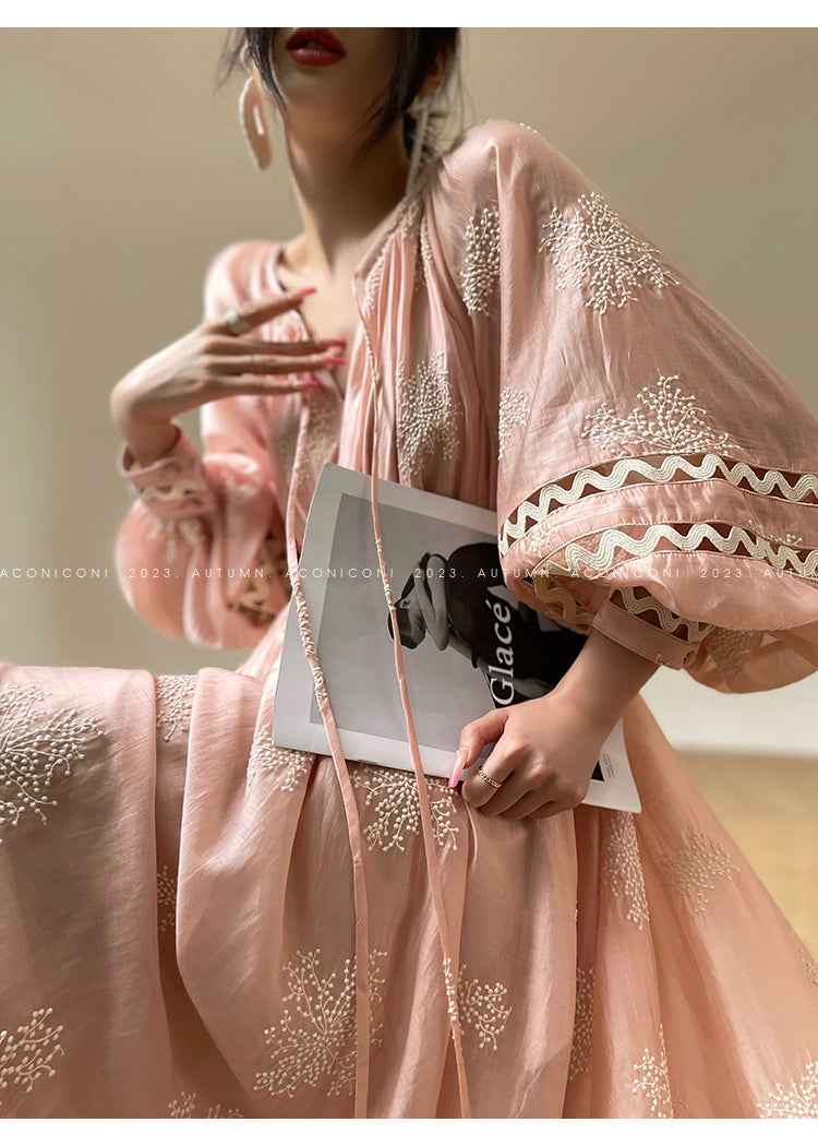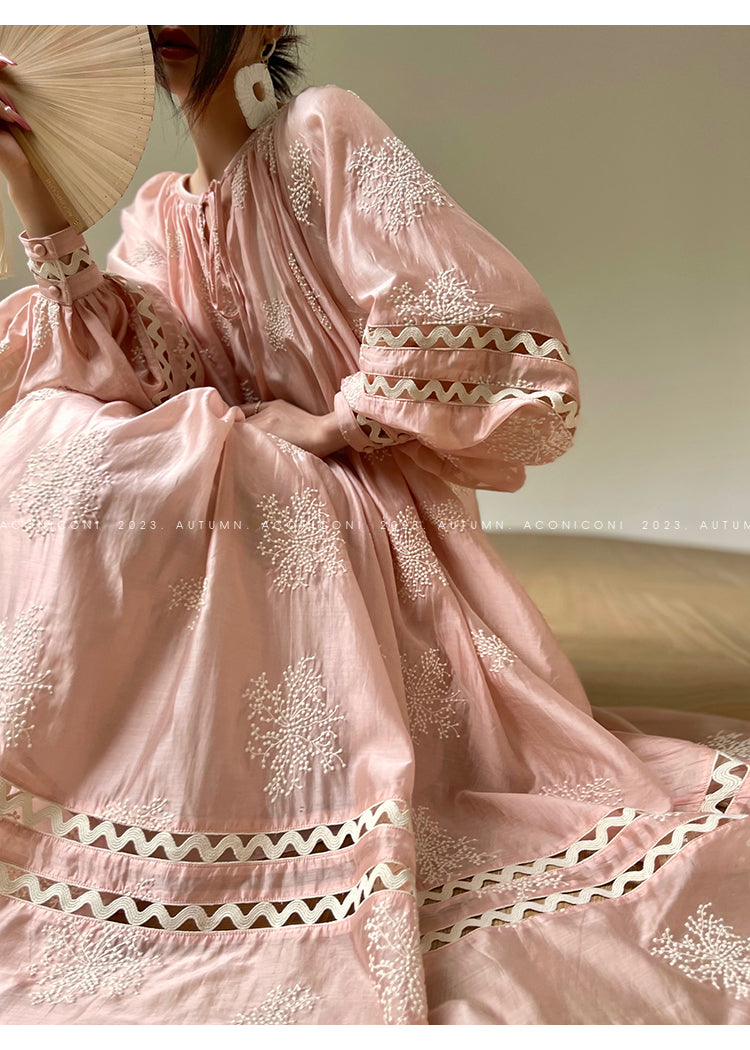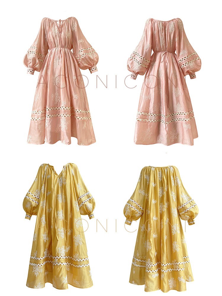 The large lantern sleeves are silhouette-like. The armhole skirt is made of smooth materials. The line design gradually spreads out. The large A-line skirt is full of romance. It is very tolerant to the figure, If you want an exquisite waistline. Just put on the belt to switch styles instantly. Custom cotton lace hollow armhole cuffs and skirt details are exquisite and moderately exposed to create a comfortable feeling. The interior is designed with reversible overlock seams. The details are exquisite and perfect.