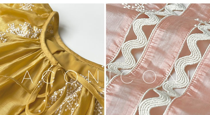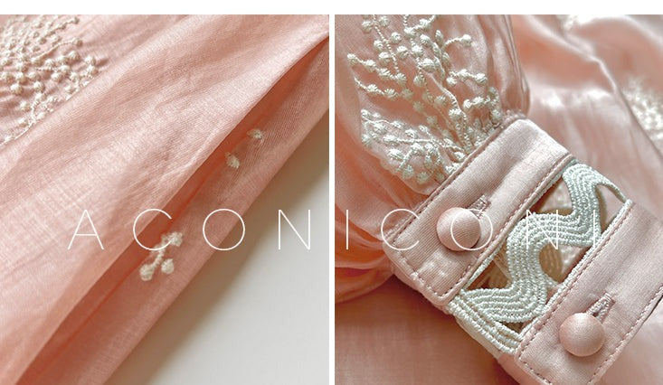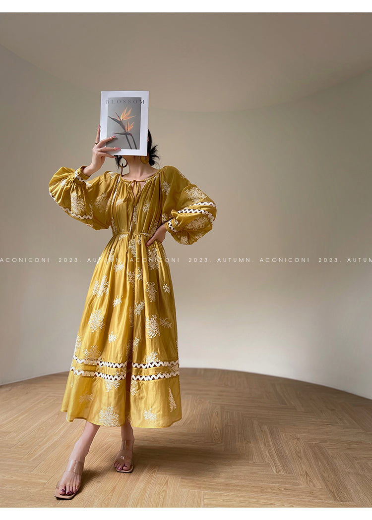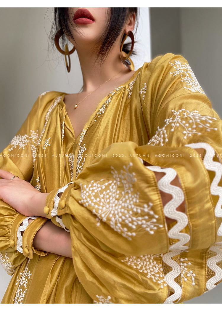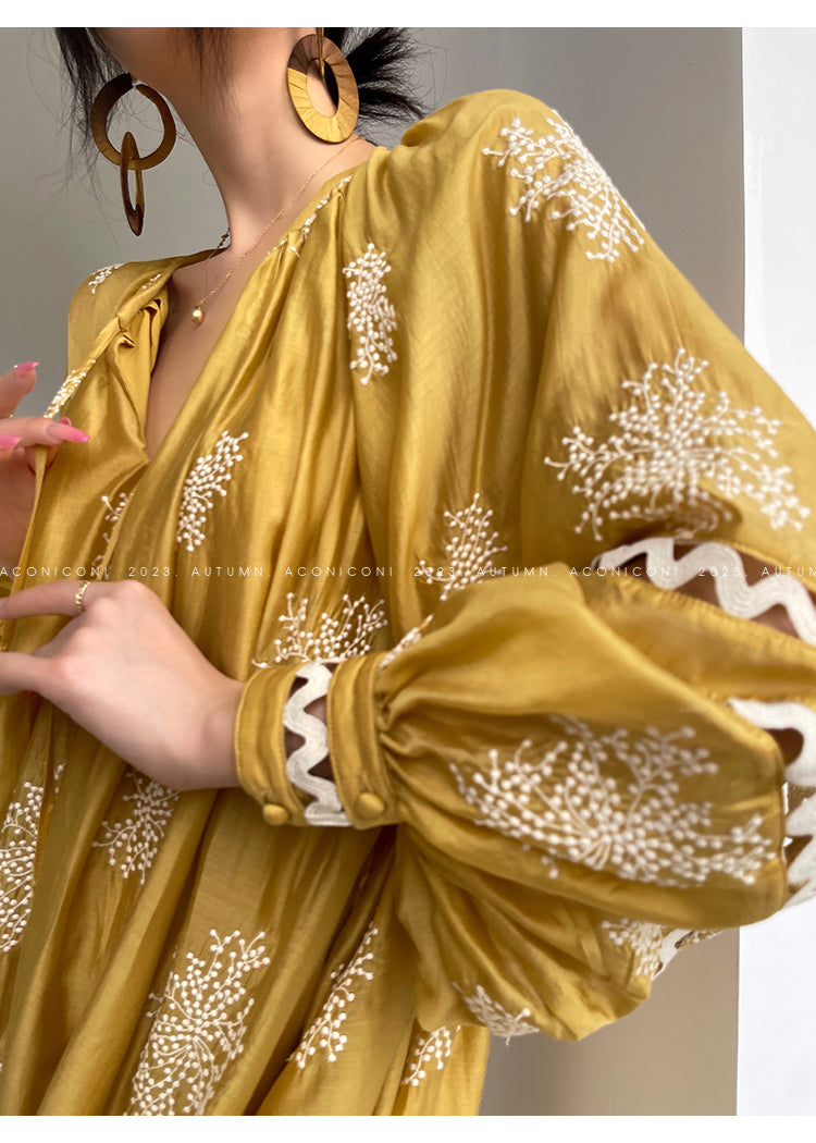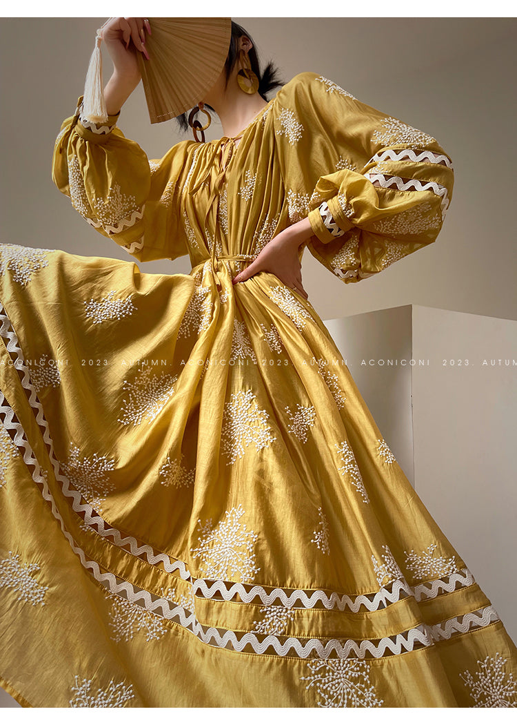 The large lantern sleeves are silhouette-like. The armhole skirt is made of smooth materials. The line design gradually spreads out. The large A-line skirt is full of romance. It is very tolerant to the figure, If you want an exquisite waistline. Just put on the belt to switch styles instantly. Custom cotton lace hollow armhole cuffs and skirt details are exquisite and moderately exposed to create a comfortable feeling. The interior is designed with reversible overlock seams. The details are exquisite and perfect.