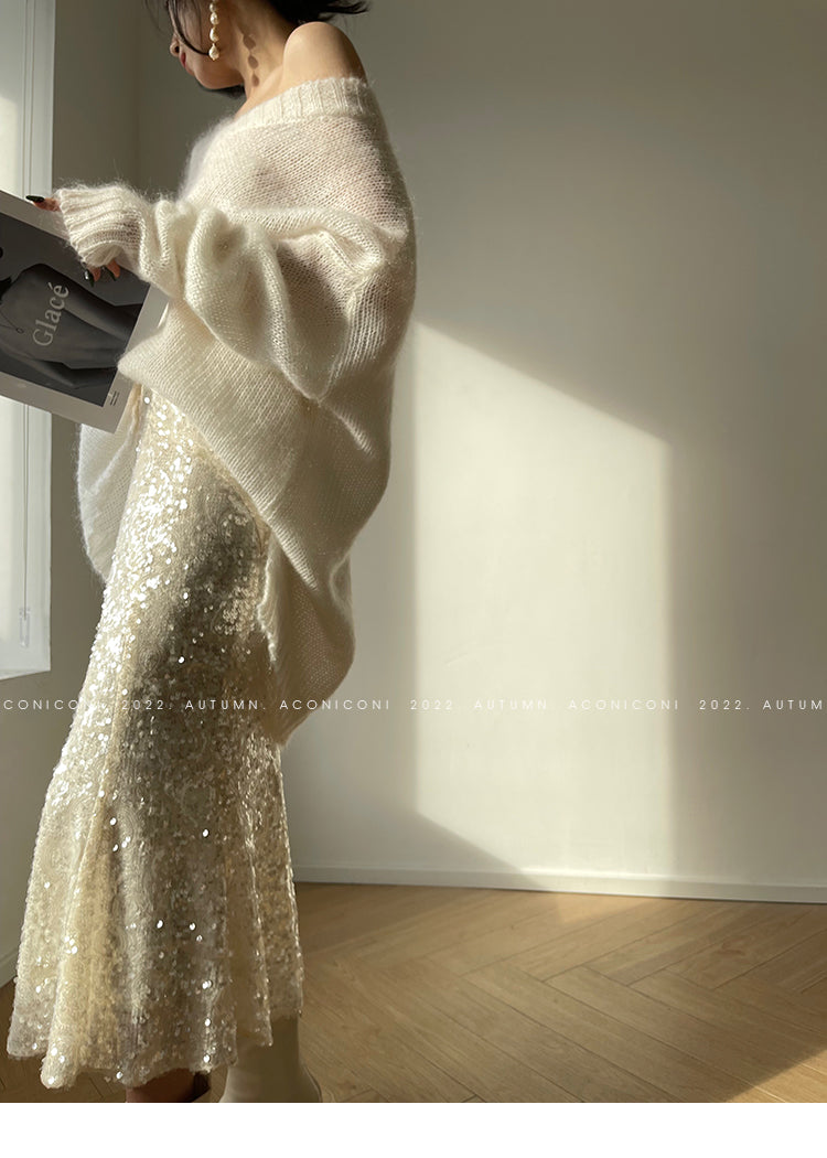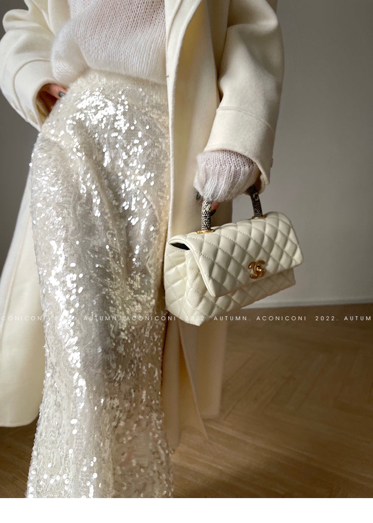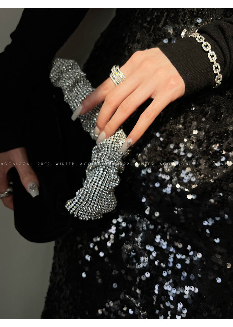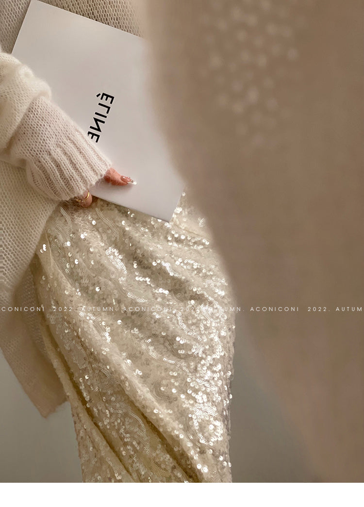 This Aconiconi Luxury Black High Waist Sequin Mermaid Long Skirt-Nne exudes a sultry yet feminine appeal. The high waist design highlights your curves while the sequin embellishments add a touch of glamour. Complete your look with this must-have skirt for a sophisticated and exclusive style.