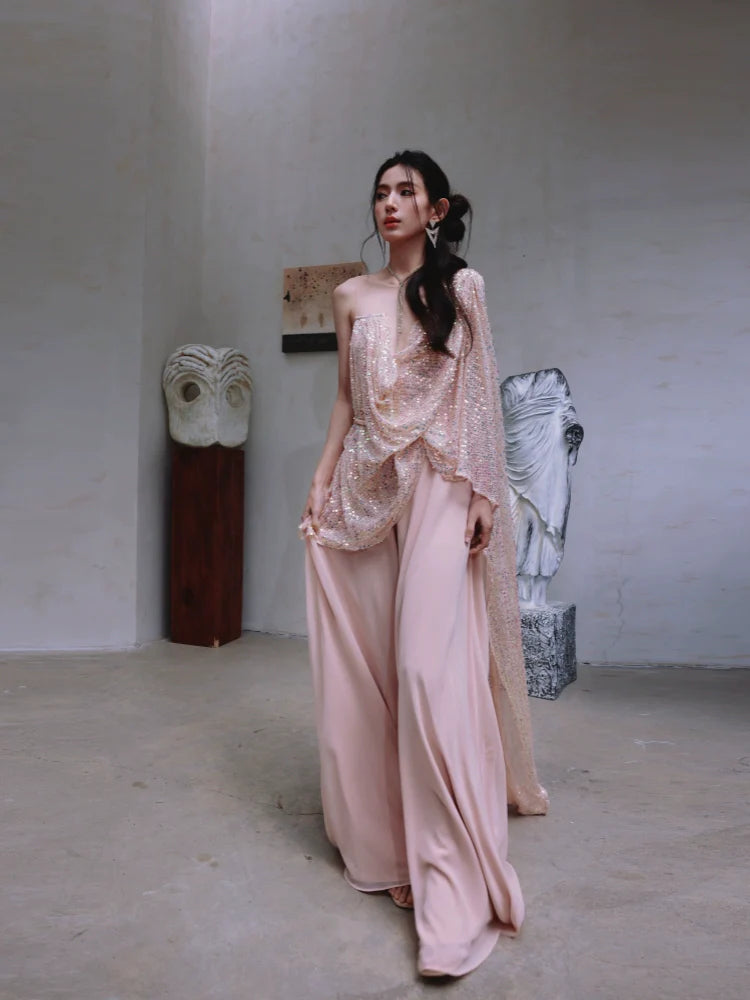 Introducing the DOLLY Luxury Pink Greek Style Deep V-Neck Sleeveless Long Prom Dress-Uloma. This dress offers an eloquent and elegant design, perfect for formal events. With its deep V-neck and sleeveless style, this dress exudes sophistication and style. Elevate your look with this luxurious dress.